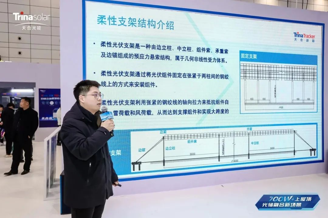 天合光能突破地形局限,助力光伏系统适应复杂地形和全场景应用,推出天合柔性系统解决方案。天合柔性支架产品布置灵活,成本更优,已广泛应用于复杂地形及多种“光伏+”场景,实现经济性与可靠性的双赢。新型结构设计,抗风能力与承载能力更强,有效降低组件隐裂风险,确保支架系统的稳定可靠。搭配天合光能一站式交付服务,为客户解决项目设计、现场施工与后期运维三大痛点问题。
