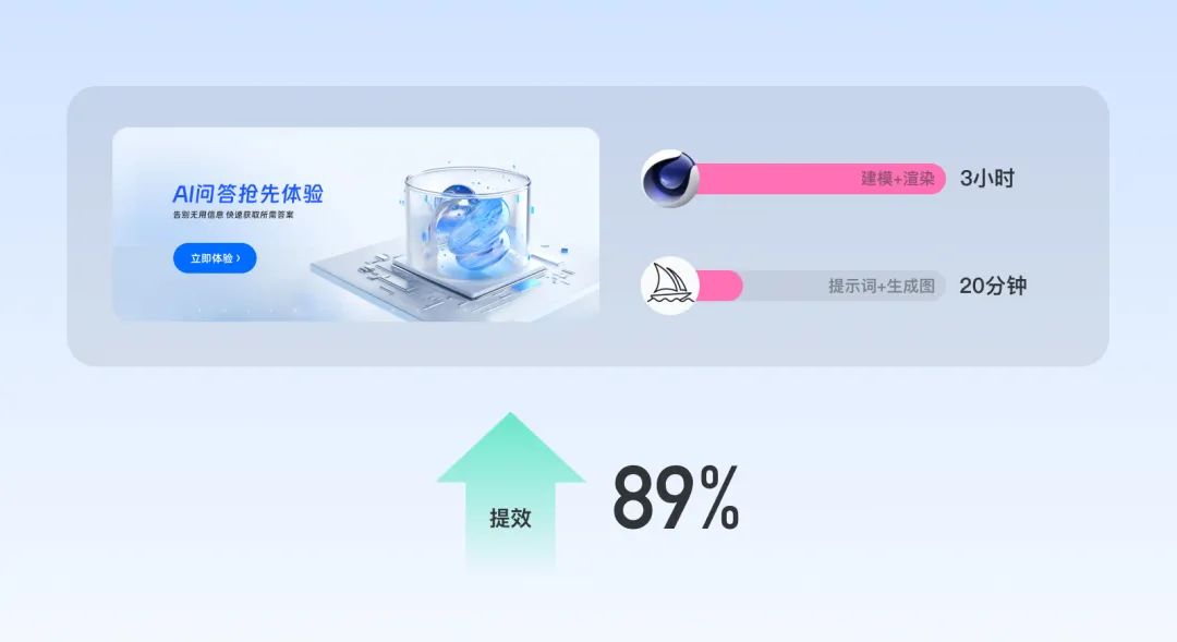 AIGC产品可以作为一种创作工具来丰富设计手段,加速设计提升设计质量。相比C4D做一个素材,AI绘画可以大大提升出图效率,市面上也是最多的,本质是增强设计师产出的效率。#03