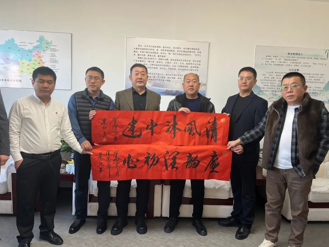 2024年3月3日上午,中建四局廊坊项目总经理孙焕强一行4人到访廊坊市衡水商会。并为商会赠送友谊之礼名师墨宝。