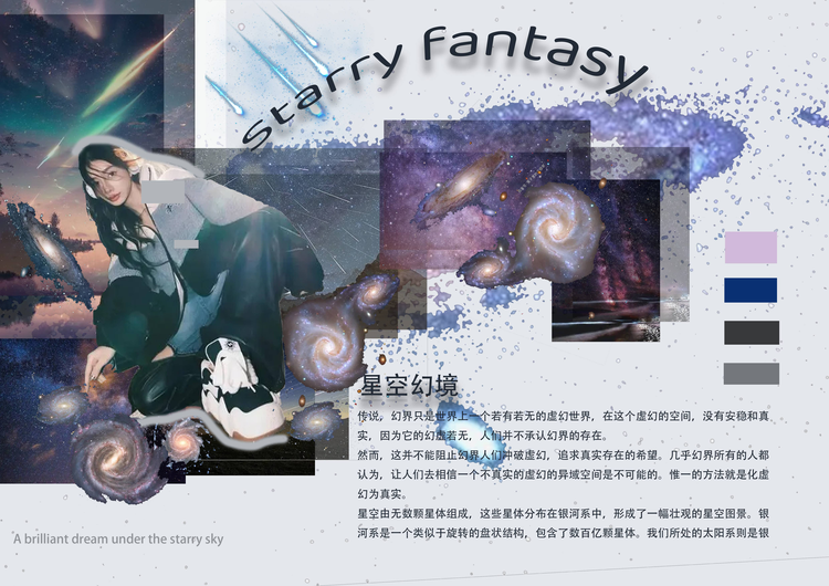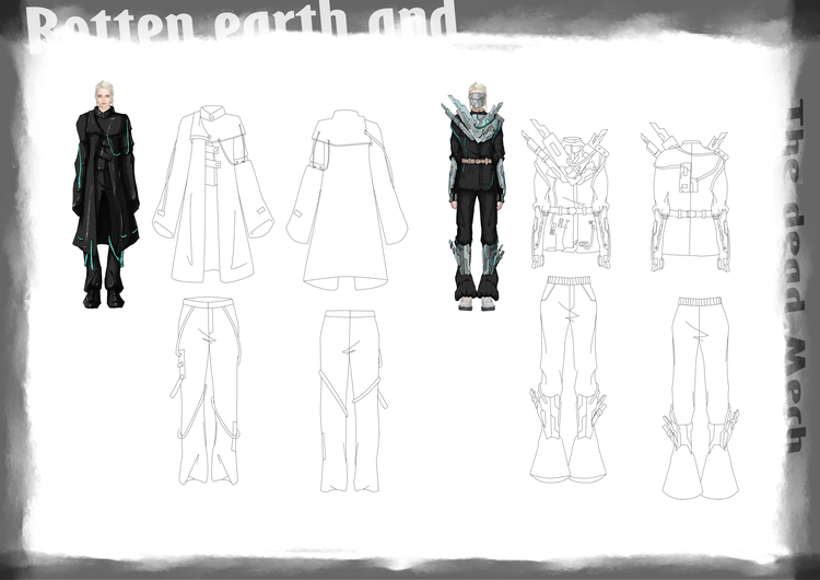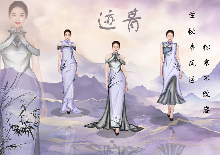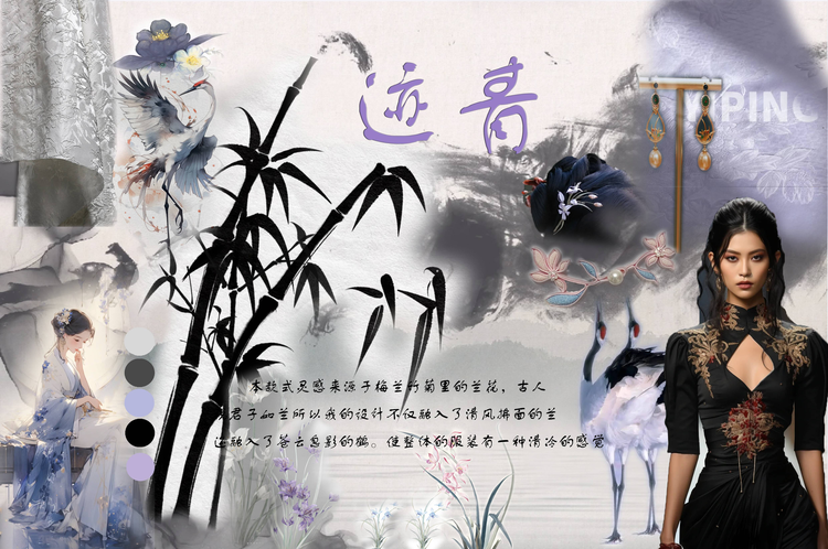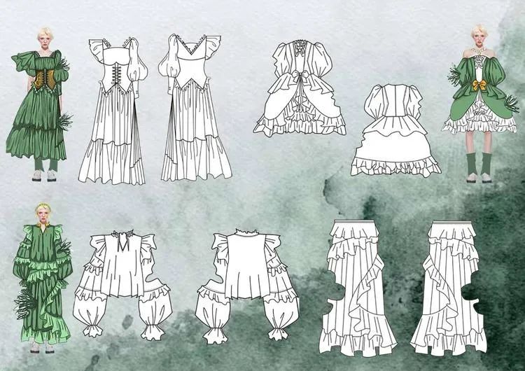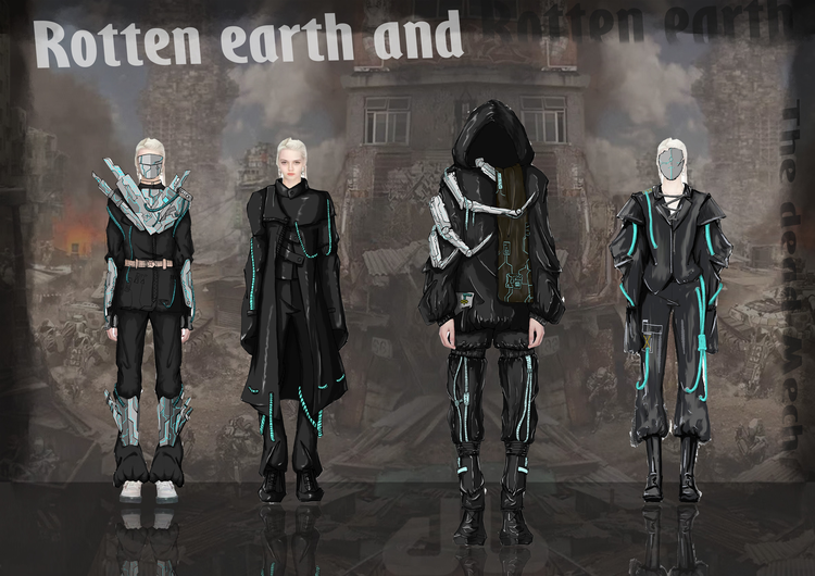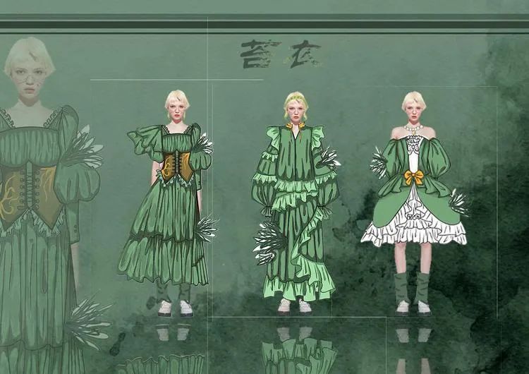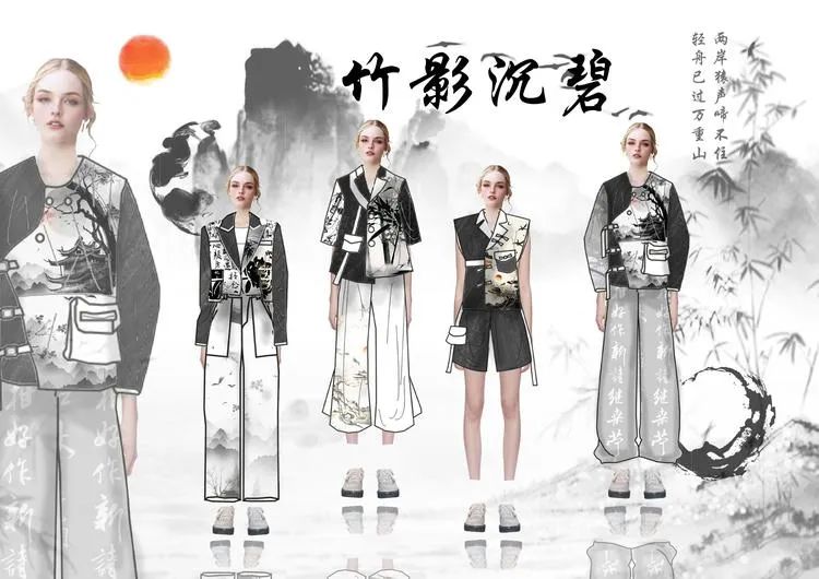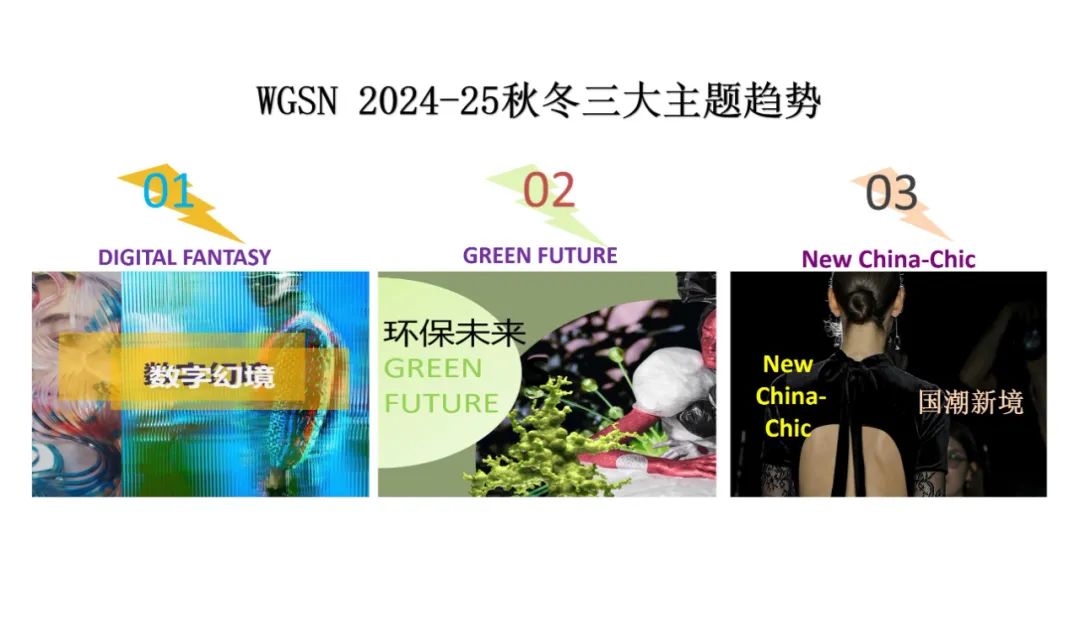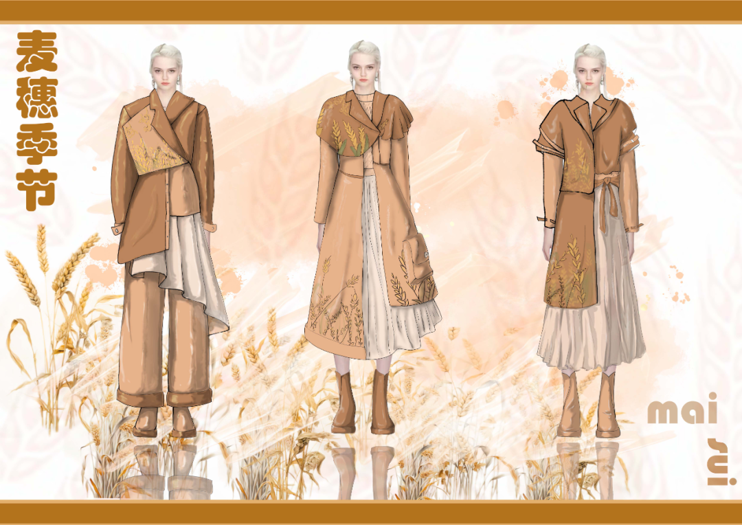 本学期课程大作业以WGSN2024-25秋冬三大流行趋势主题(数字幻境、环保未来、国潮新境)为设计方向,进行主题设计拓展。以下是部分23服设2班的学生作品。