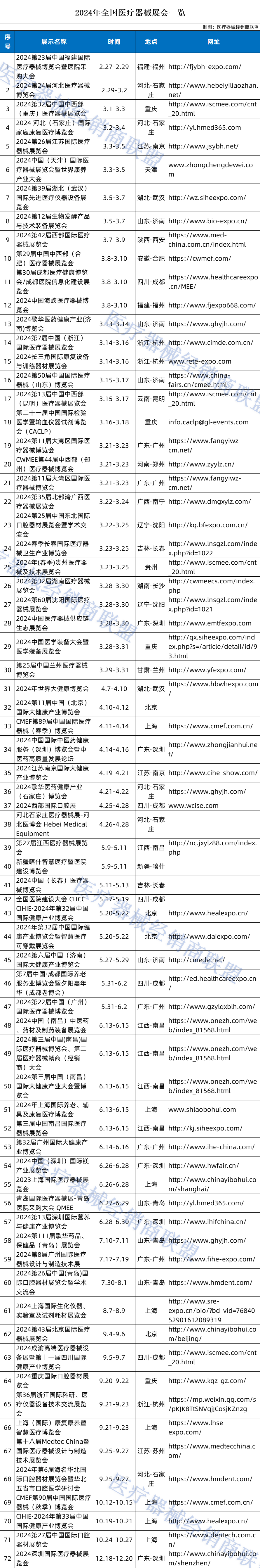 为此,联盟菌精心整理了一份“2024年医疗器械展会时间表”,为大家的新年规划提供有力的参考。