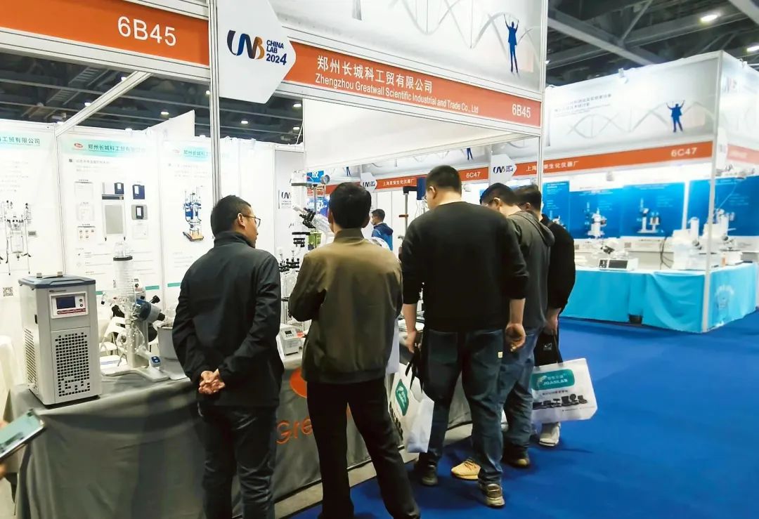 郑州长城科工贸有限公司携旋转蒸发仪、调速玻璃反应釜、动态流体温度控制系统、密闭制冷加热循环装置、循环冷却器、低温恒温搅拌反应浴、循环水式多用真空泵等系列化解决方案亮相展会。