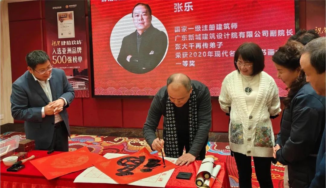 晚宴现场,主办方精心准备了各种精彩节目,经典节目拉酒线大家报名踊跃尽显技艺、朗读肆拾玖坊创业家宣言不忘初心热血前行、现场认购抽取幸运红包等等,晚宴的最后由国家一级注册建筑师、荣获2020年现代名家全国书画大赛一等奖张乐,张大师现场为大家献上新年字画。晚会现场的气氛热烈非凡,企业家们举杯畅饮,共叙情谊,不亦乐乎!