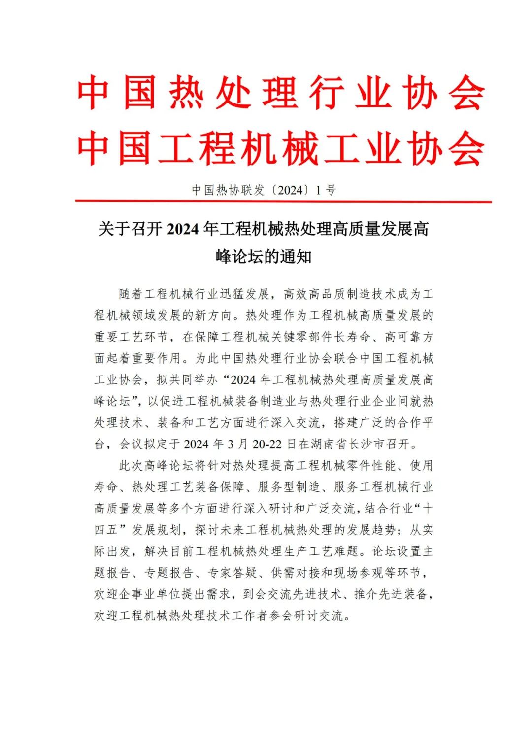 关于召开2024年工程机械热处理高质量发展高峰论坛的通知