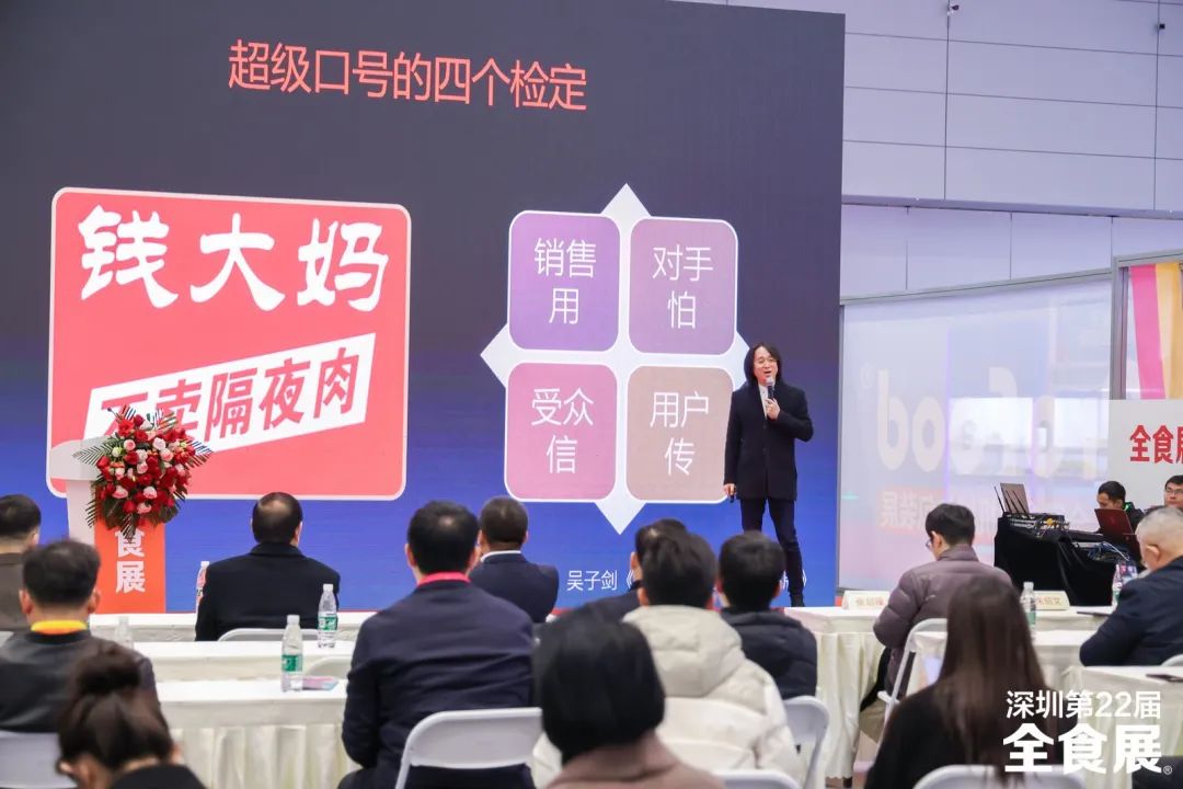 随着食品消费进一步升级和分级,用户的消费需求日益具向化和多元化。为帮助品牌抓住消费趋势,实现品牌进化突围,各行业专家、企业家隆重出席本次活动。超级品牌战略专家吴子剑博士受邀出席,并作为本次大会主讲嘉宾之一,发表了“超级爆品成就超级品牌”的主题演讲,分享了新环境新竞争下超级爆品的重要性以及打法,为现场的企业家提供了一条清晰的品牌增长之路,助力各品牌高质量发展,向超级品牌跃进,赢得未来。