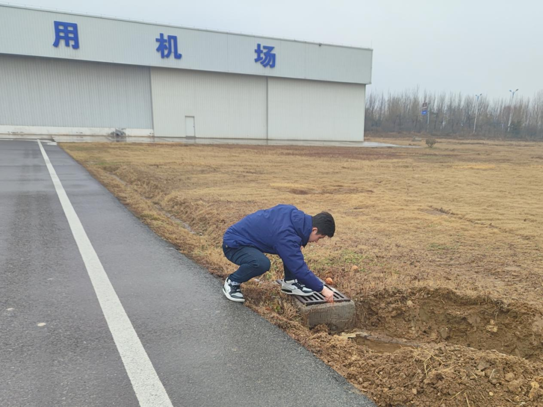 岚山通用机场公司对飞行区进行巡查,并对排水系统进行检查清理。