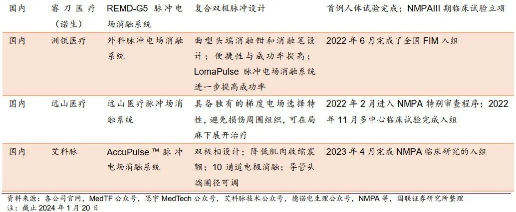 3.1 脉冲消融产品及临床进度总览