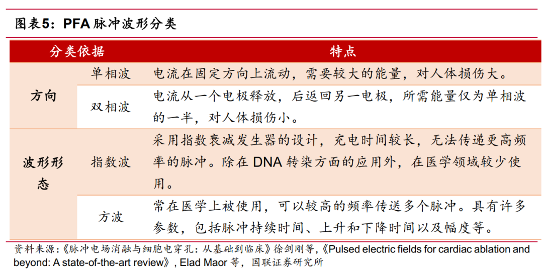 PFA 具有多种关键参数,如电场强度、波形形状、脉冲特性等。各公司产品针对不同治疗场景及不同病灶特征,在参数设计上大不相同,目前尚难进行定量比较,有待进一步研究。