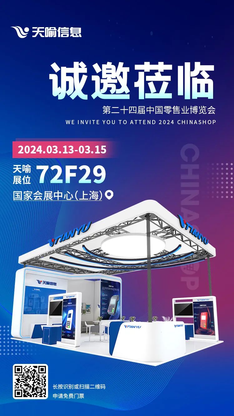 我们诚挚邀请您莅临参加第二十四届中国零售业博览会。作为天喻信息的尊贵客户,您将有机会亲临展位(72F29)参观我们精心准备的展览,并了解最新的行业动态和创新产品。