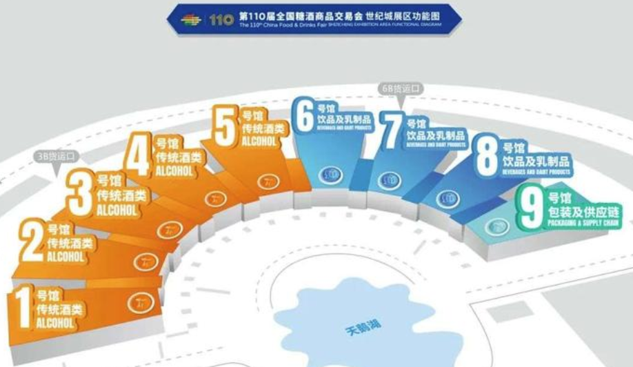 1-5号馆:酱酒专区(1号馆)、清香酒专区(2号馆)、川酒专区(4号馆)、黄酒专区(5号馆)、保健酒专区(5号馆)、电商专区(5号馆)