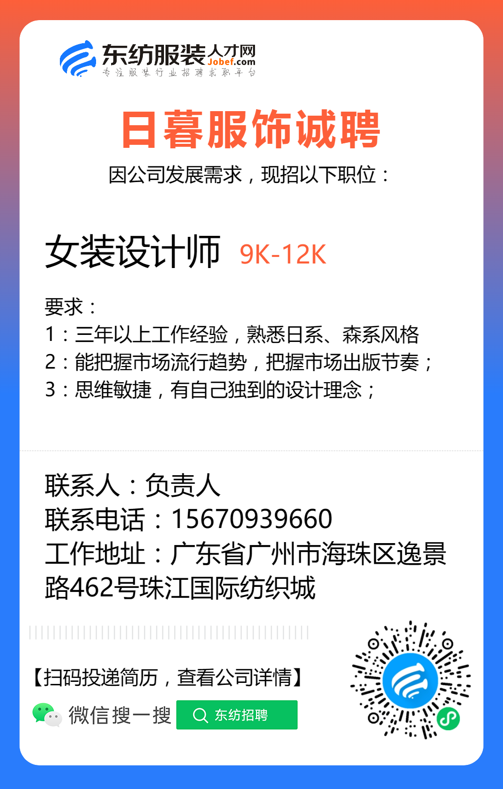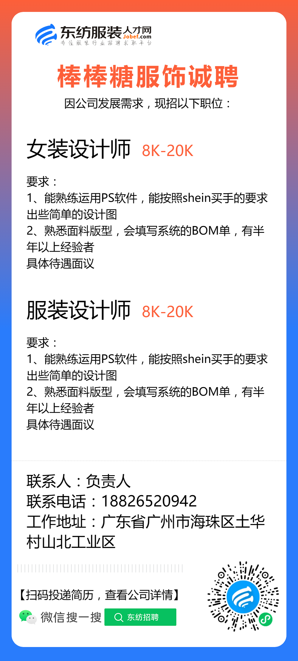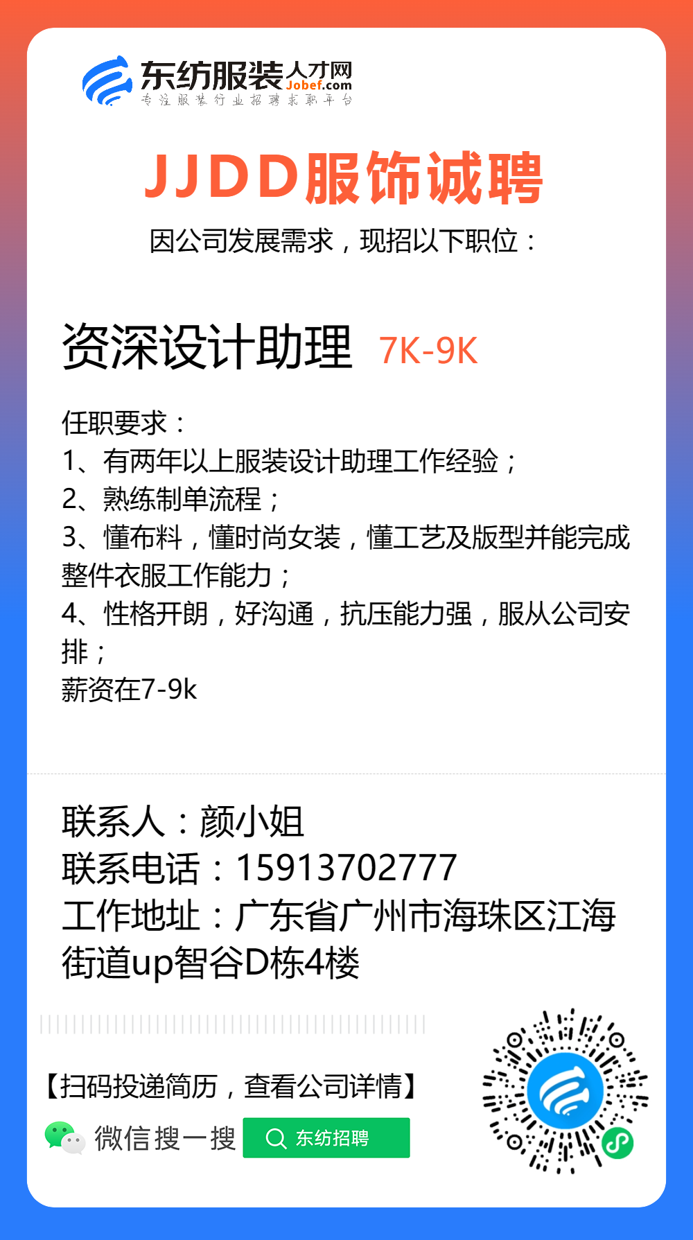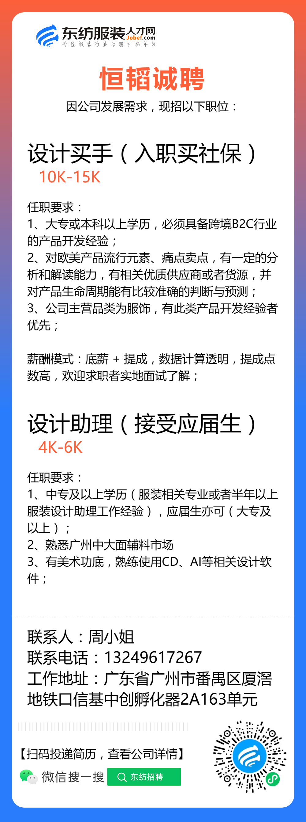 服装招聘·设计类丨3. 06号,女装设计师、男装设计师、童装设计师、设计助理.....