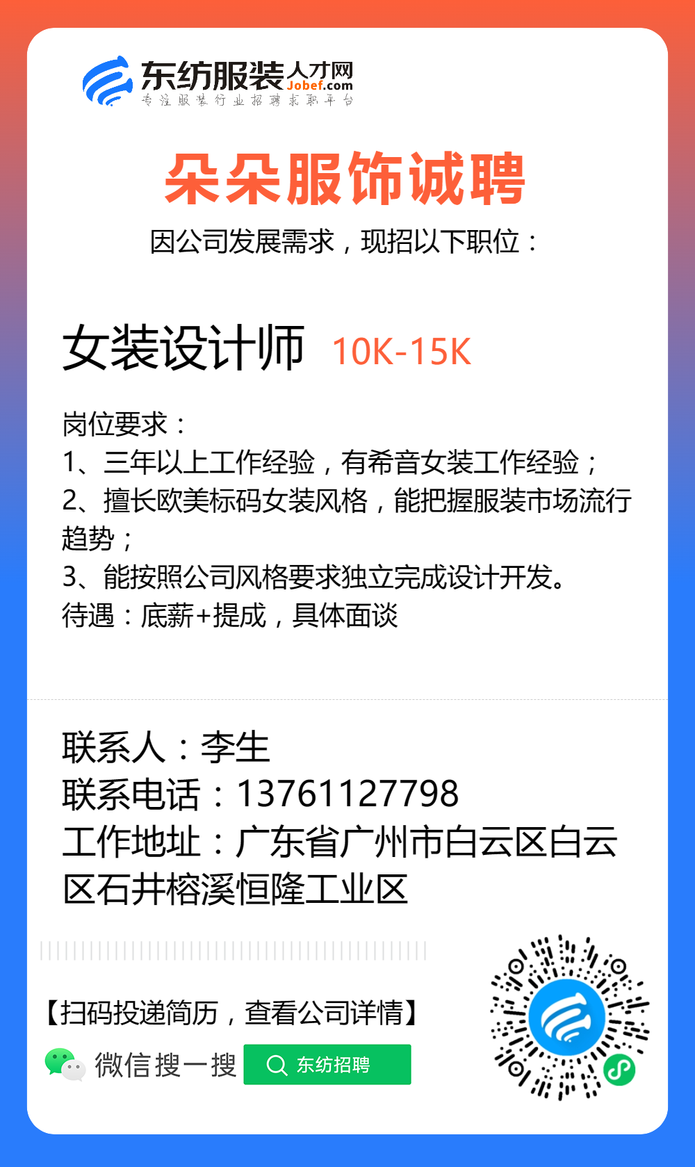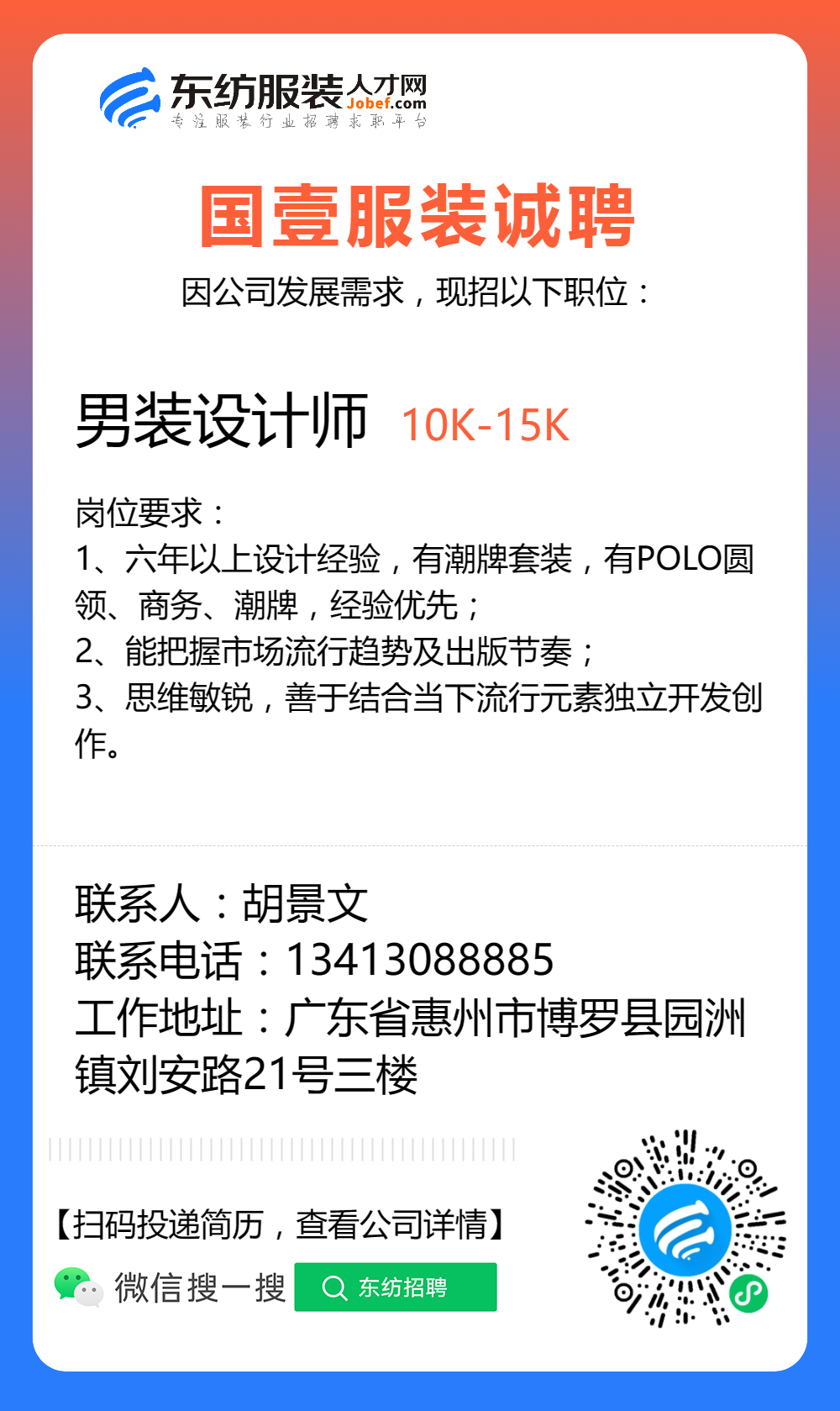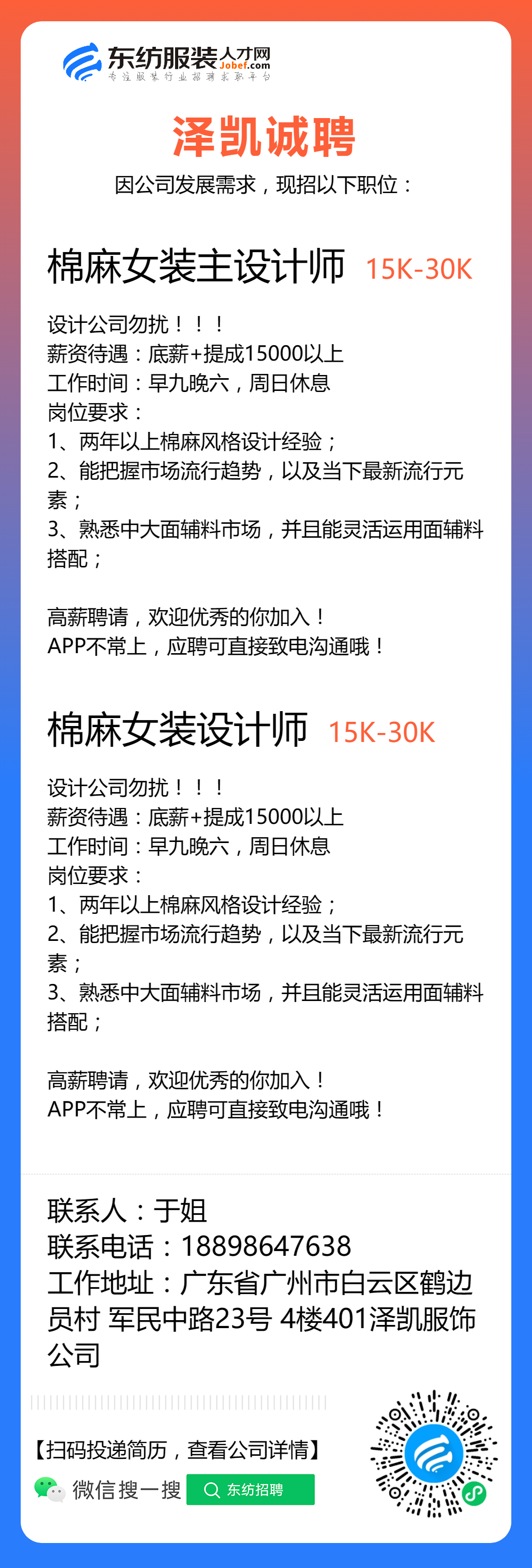 服装招聘·设计类丨3. 06号,女装设计师、男装设计师、童装设计师、设计助理.....