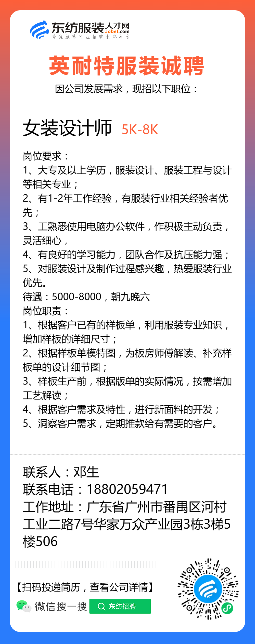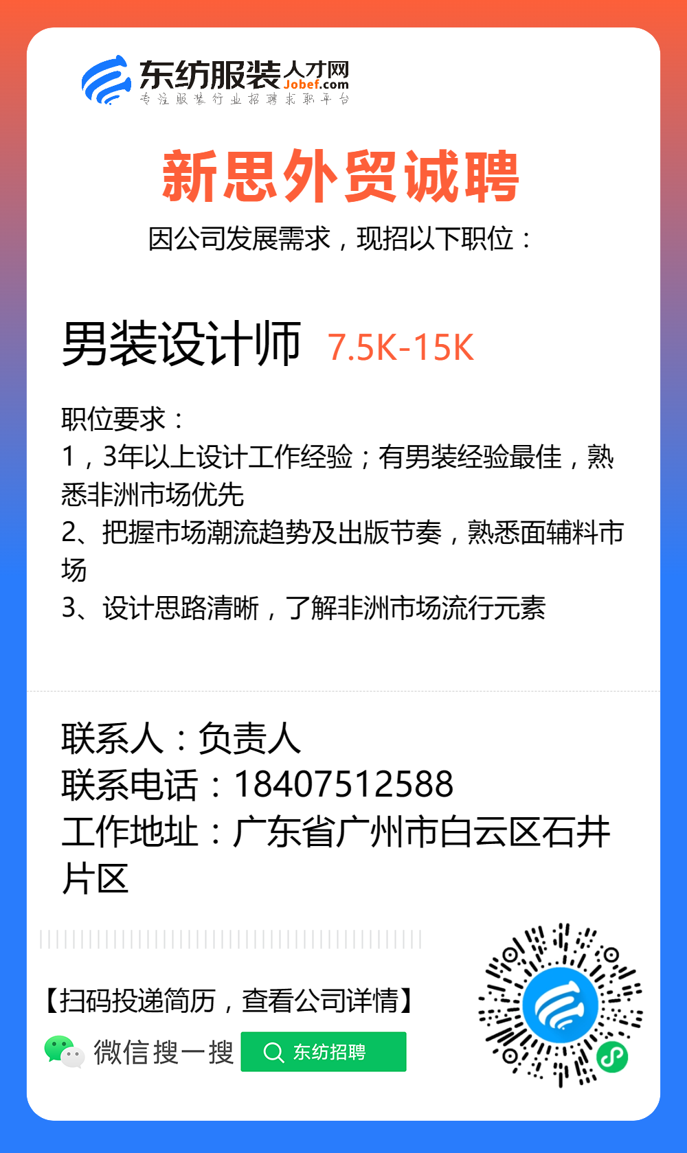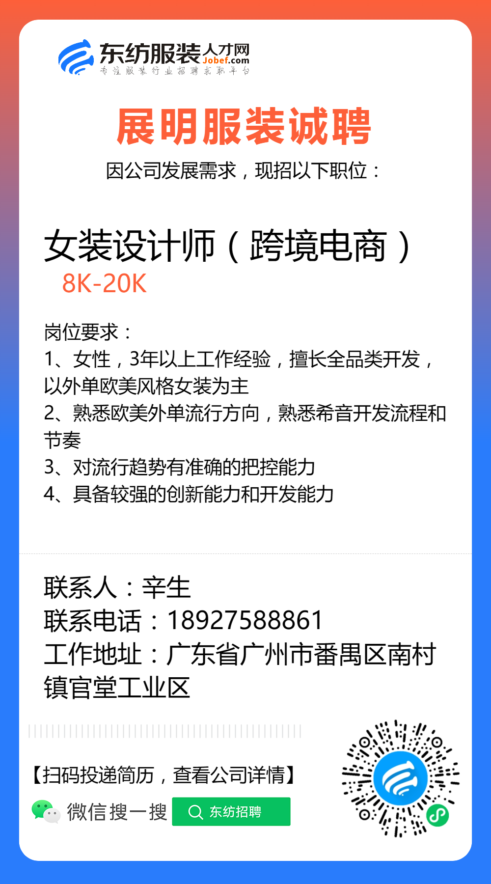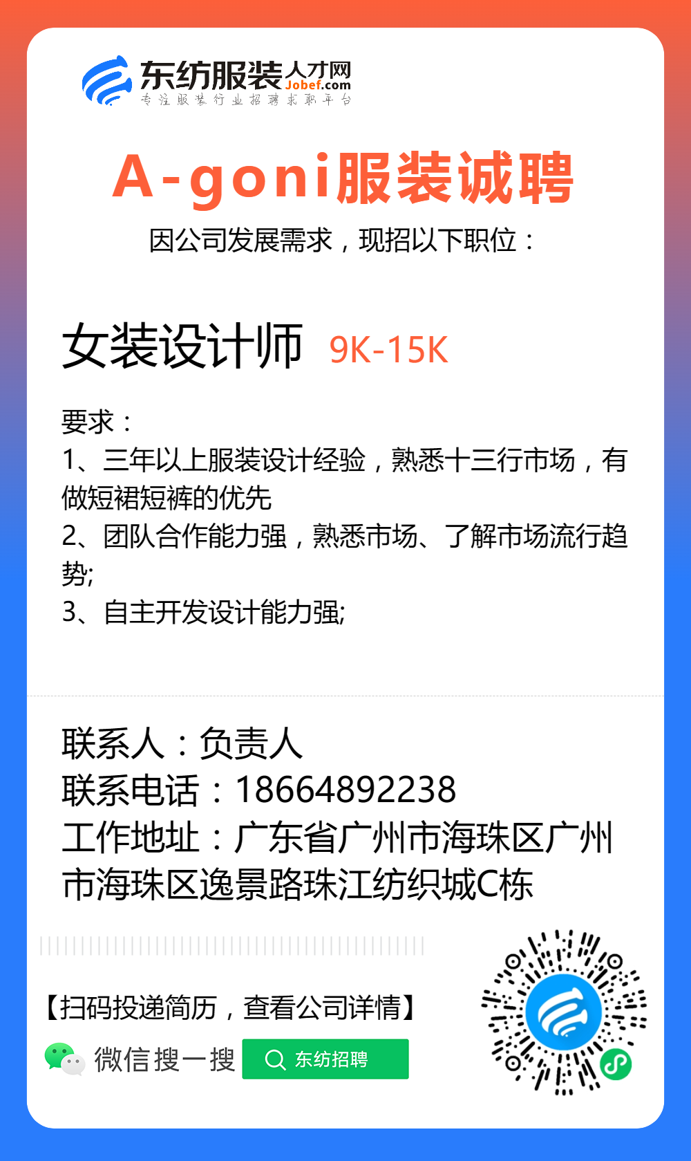 服装招聘·设计类丨3. 06号,女装设计师、男装设计师、童装设计师、设计助理.....