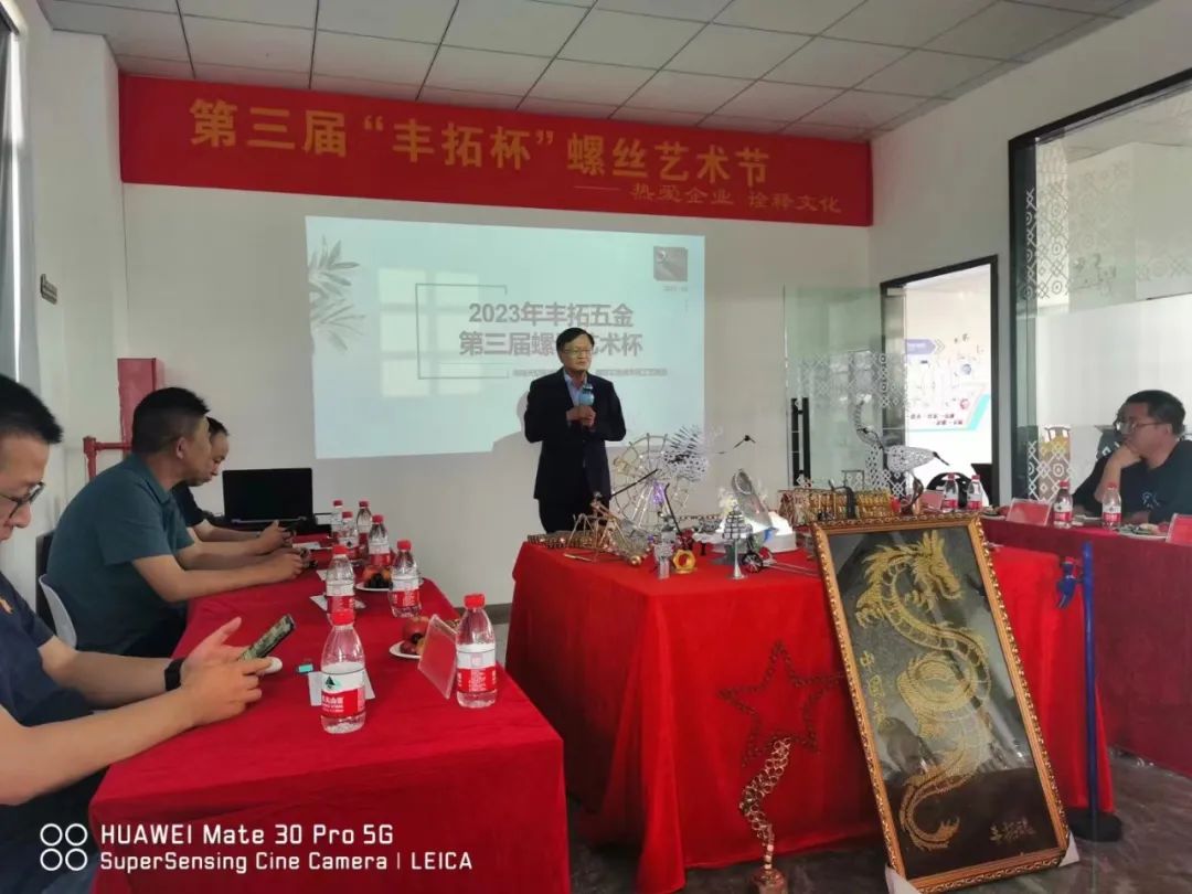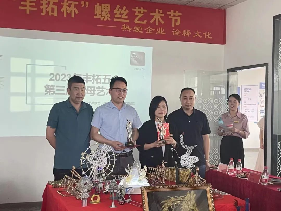 两年前,浙江省紧固件产业技术联盟副主席单位——海盐丰拓五金制品有限公司总经理杨浩峰以“热爱螺母行业 传承工匠精神”为主题,发起了“海盐丰拓五金螺母艺术节”活动,让所有员工参与其中,用不同的紧固件产品打造艺术品。杨总希望所有的员工都能热爱自己从事的行业,了解自己的行业,学习敬业、专注、创新的工匠精神。5月13日,海盐丰拓第三届螺母艺术杯评比如期举行。浙江省紧固件产业技术联盟主席蔡正雄、秘书长陈冠达受邀出席。