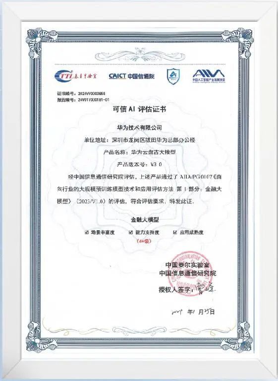 近期,华为云盘古大模型作为华为金融大模型解决方案的主要基础模型,参与中国信通院组织的可信AI大模型标准符合性验证,顺利完成金融大模型标准符合性验证,并获得优秀级(4+级)评分,首批通过金融大模型标准符合性验证。这是华为金融大模型解决方案又一进展。
