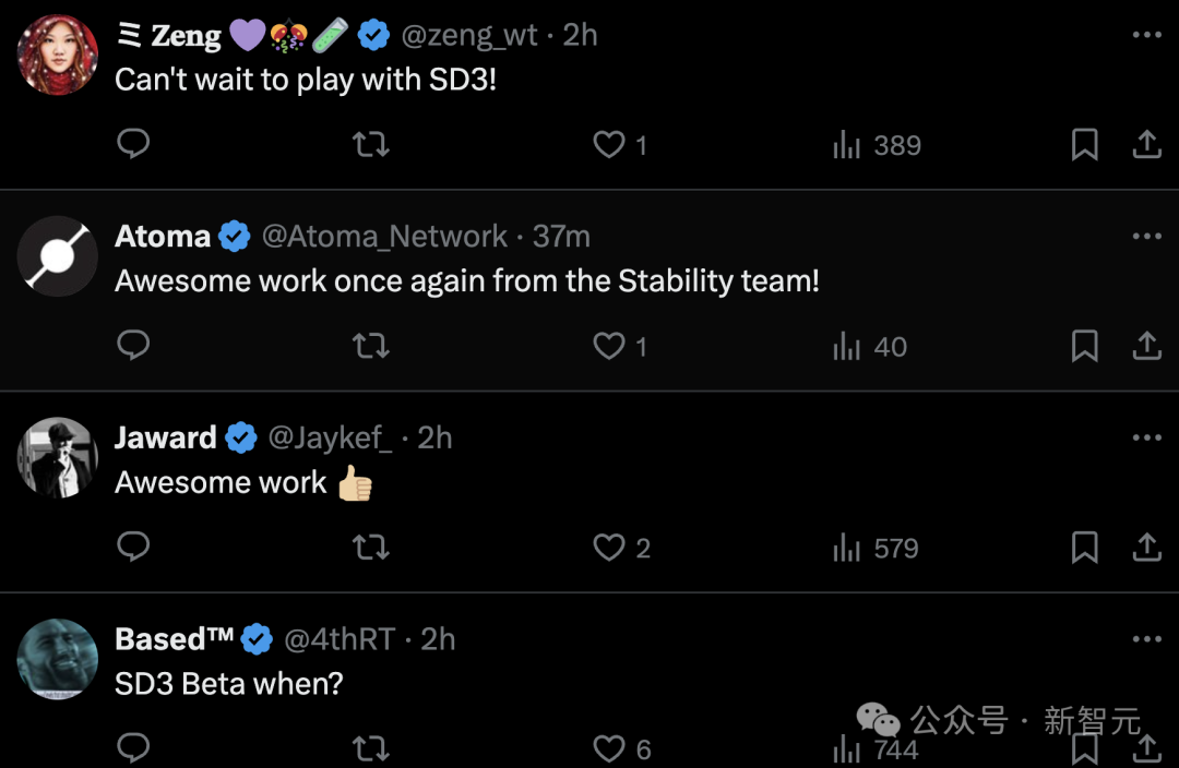 此外,Stable Diffusion 3在发布时将提供多个版本,参数范围从8亿到80亿,从而能以进一步降低使用的硬件门槛。