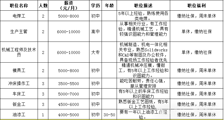【岗位信息】淳安千岛湖同德机械有限公司招聘
