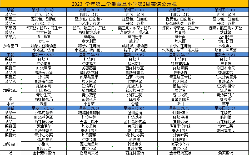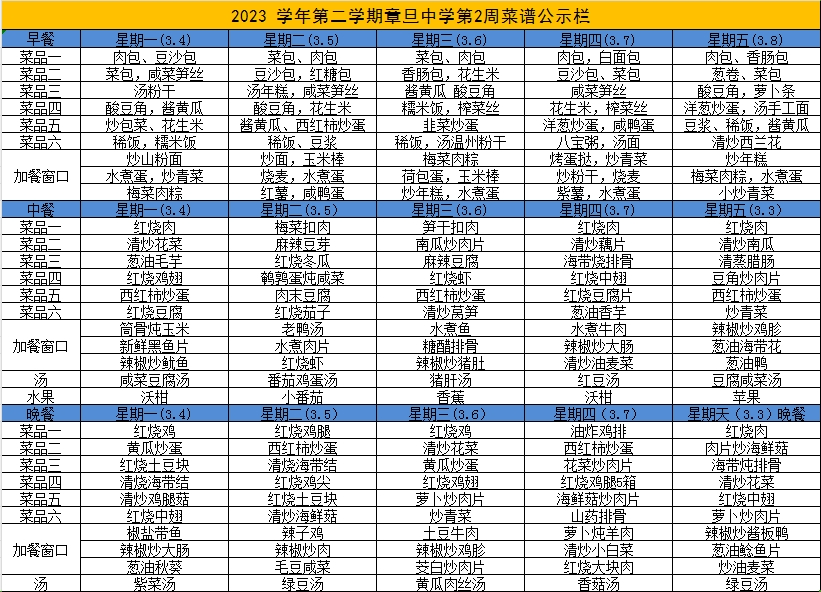 【章中“食”光】章中集团第2周菜谱(3.4-3.8)