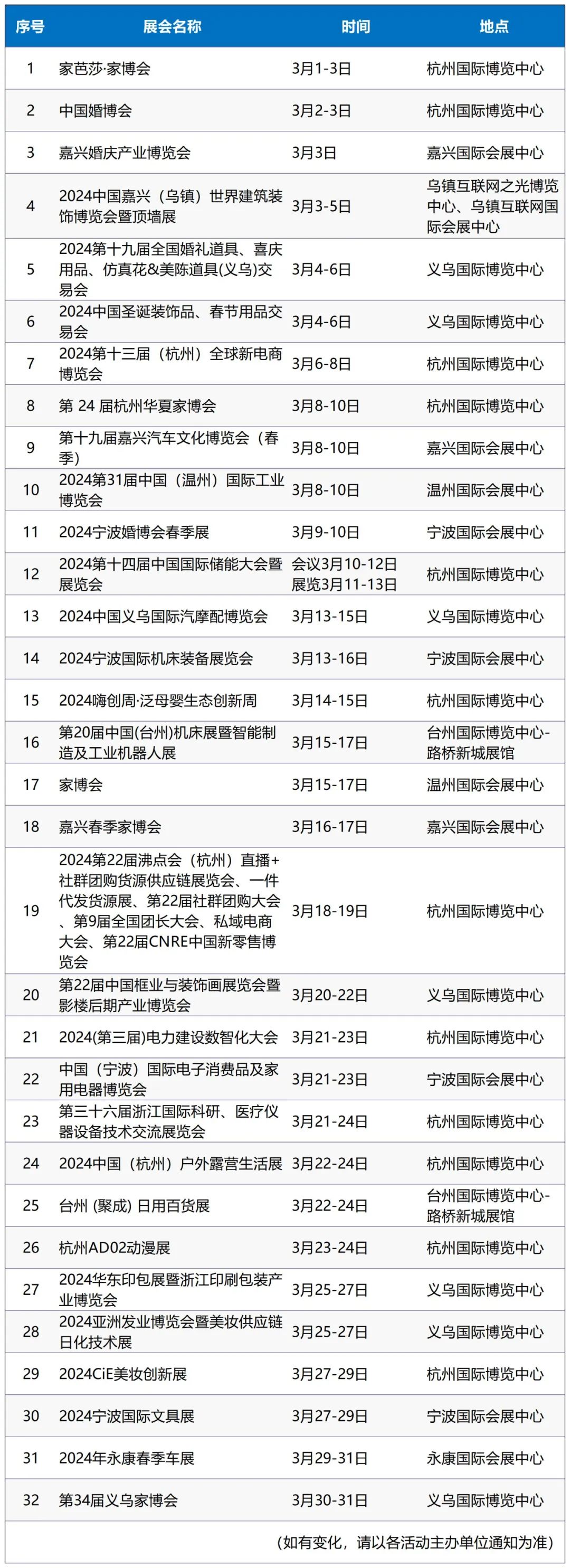 2024年3月份义乌国际博览中心/永康国际会展中心展会排期| 2023年11月20日