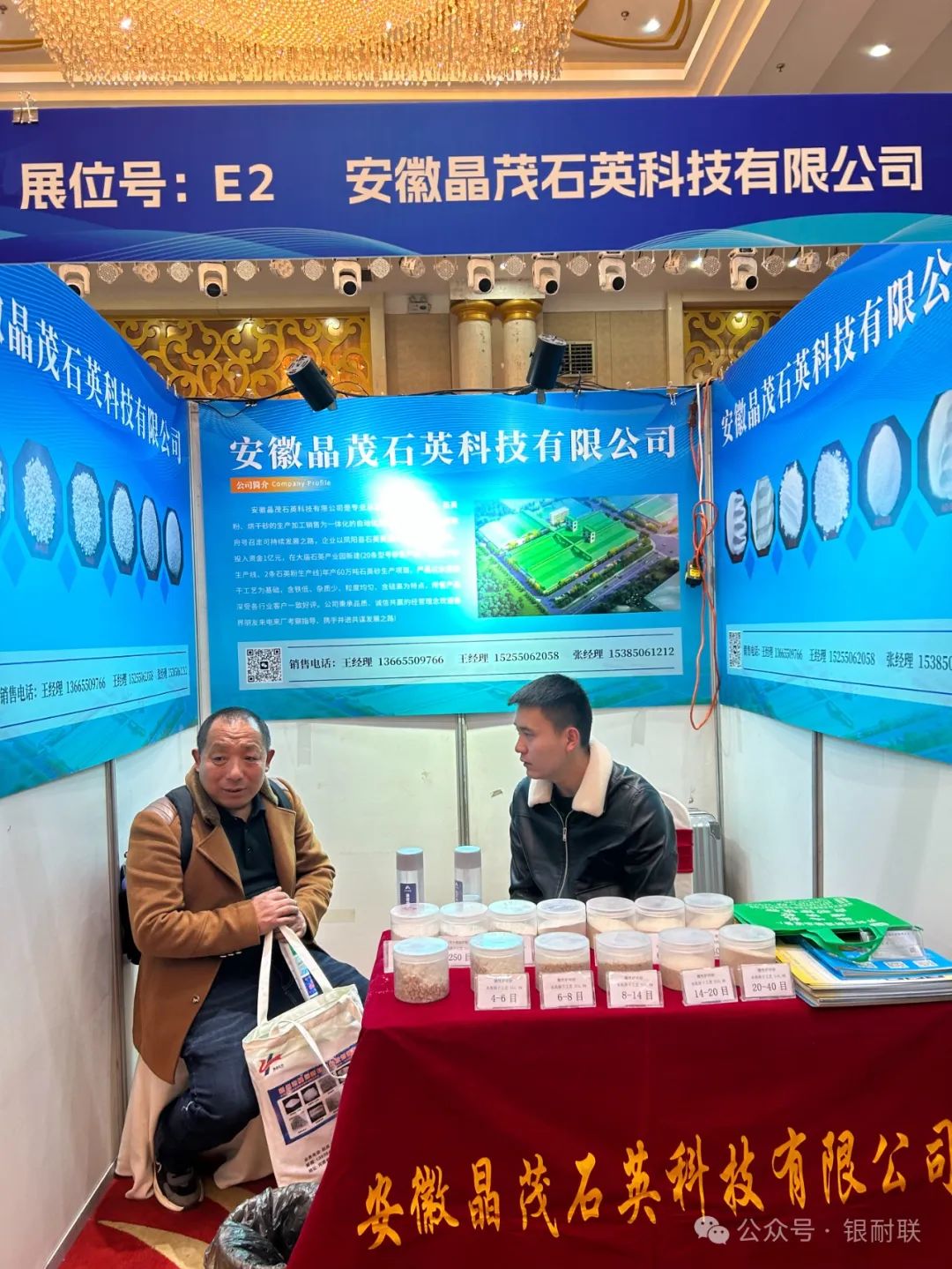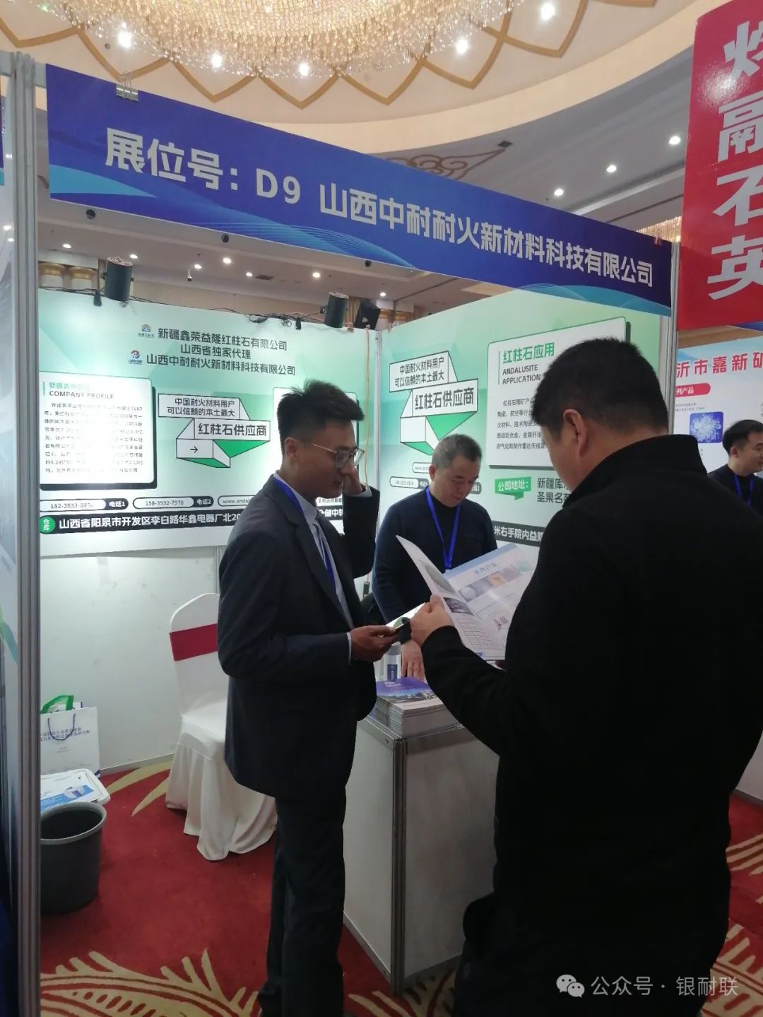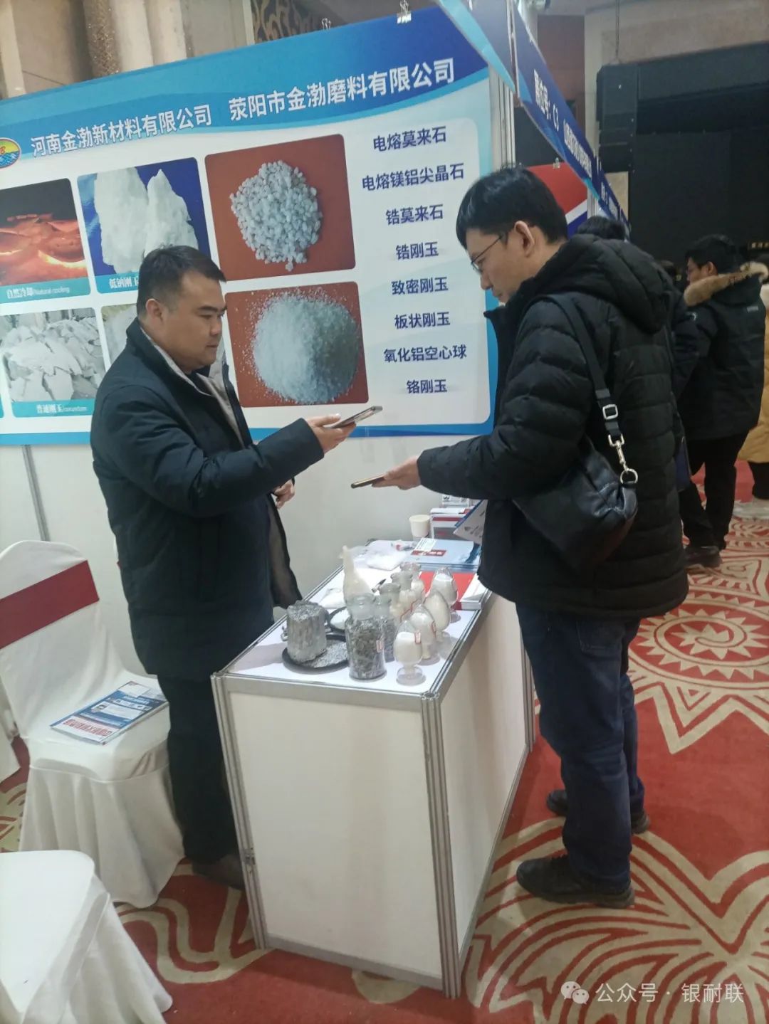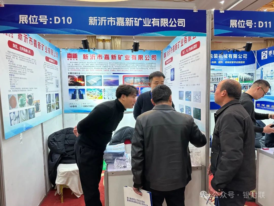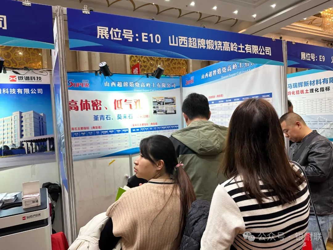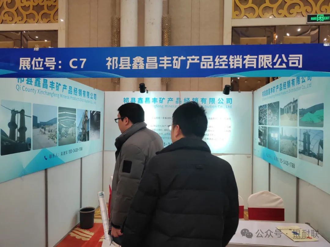 本次展位企业有上海林福机电有限公司(耐火材料自动配料系统),山西中齐锐能高温材料有限公司(致密均化料),原平市焱磊耐火材料有限公司(烧结莫来石、铝矾土),郑州正大新材料科技有限公司(白刚玉、电熔莫来石、锆莫来石、烧结板状、刚玉、电熔尖晶石、铬刚玉),重庆市博赛矿业(集团)有限公司(棕刚玉、铝矾土、工业氧化铝),山东齐耐销售有限公司(白刚玉、烧结刚玉)山东东仪光电仪器有限公司(荧光光谱仪),淄博山宇机械设备厂(颚式破碎机、锤式破碎机、双辊破碎机、直线振动筛、搅拌机),上海精谱科技有限公司(高端 X 荧光分析仪器),焦作市嘉兴科技有限公司(低碳致密棕刚玉),三门峡蜜蜂新材料有限公司(致密刚玉),苏州英飞思科学仪器有限公司( X 荧光光谱仪、矿石专用分析仪),山西圣川新材料科技有限公司(竖窑铝矾土),郑州纽路普科技有限公司(智能配混料生产线、工业控制系统),山西中耐耐火新材料科技有限公司(新疆益隆红柱石),新沂市嘉新矿业有限公司(熔融石英),枣庄市复粮包装机械有限公司(全自动包装机、码垛机、吨袋撑袋器,码垛机械手,配料生产线),山西晋东南神话新材料有限公司(氮化硅铁、氮化硅锰、氮化硅、硅氮合金),辽阳市巨欣化纤有限公司(防爆裂纤维),孝义市浩泰耐火材料有限公司(竖窑铝矾土)平遥县荣达耐材科技有限公司(均化铝矾土),安徽晶茂石英科技有限公司(石英砂)辽阳市和源化纤有限公司(防爆裂纤维),布鲁克(北京)科技有限公司( X 射线荧光光谱仪、 X 射线多晶衍射仪、 X 射线单晶衍射仪和三维 X 射线显微镜),山西河曲县万联节能材料有限公司(焦宝石、莫来石),原平市宝龙矿业有限公司(铝矾土),佛山市佛诺斯除铁机械设备有限公司(磁分选设备),江苏天瑞仪器股份有限公司(荧光光谱仪),义马瑞辉新材料有限公司(均化铝矾土),山西超牌煅烧高岭土有限公司(高岭土、莫来石、董青石)长沙微谱科技有限公司(荧光光谱仪、熔样机),新疆麦科斯环保科技有限公司(微硅粉、减水剂),河南育磷化工有限公司(磷酸二氢铝、三聚磷酸钠、六偏磷酸钠、85%磷酸),无锡创想分析仪器有限公司(光谱仪、碳硫分析仪)郑州市昊运新材料科技有限公司(棕刚玉、白刚玉、 a 氧化铝、电熔莫来石、电熔镁铝尖晶石、氧化铝空心球),北京霍里思特科技有限公司( X 射线智能分选系统)山西道尔耐火材料有限公司(竖窑矾土、均化铝矾土),河南金渤新材料有限公司(白刚玉、电熔莫来石、锆莫来石、电熔尖晶石、空心球),山东凯瑞环保科技有限公司(脱硫、脱销、除尘、 VOCS 挥发性有机物治理、工程施工及整体环保方案设计),安阳市定兴冶金耐材有限责任公司(氮化硅铁、氮化硅猛、氮化硅、金属硅粉),祁县鑫昌丰矿产品经销有限公司(铝矾土、均化铝矾土)阳泉郊区耐火材料专业镇(硅铝质、锆质、镁质、碳质耐火材料)耐材之窗网/银耐联(耐火材料产业链数智化综合服务商),上海银耐联供应链有限公司(镁砂、矾土、鳞片石墨、碳化硅)