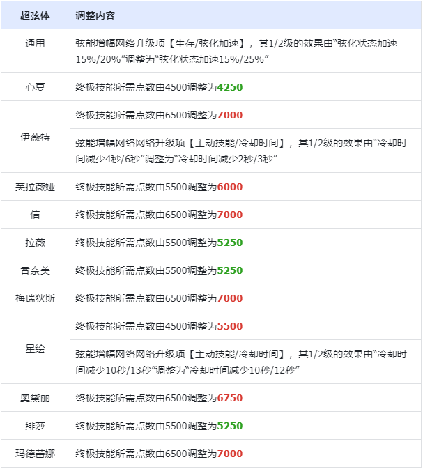 弦能增幅网络成长项【有效射程提升】激活后伤害调整如下: