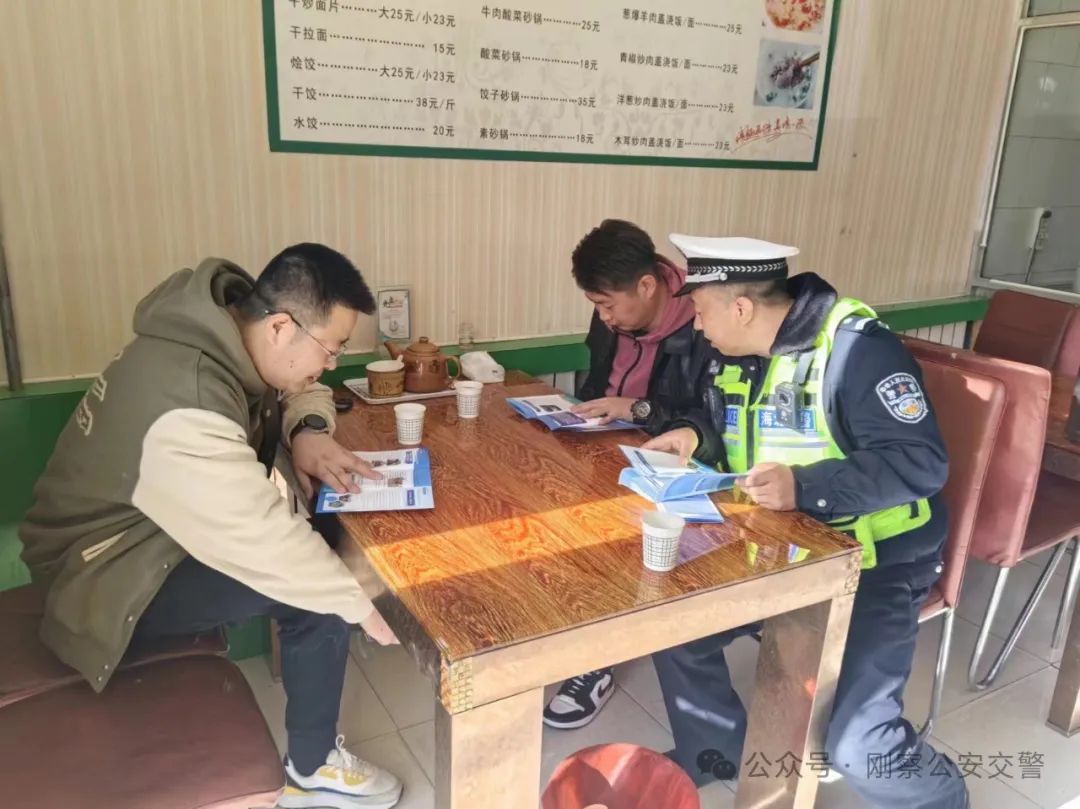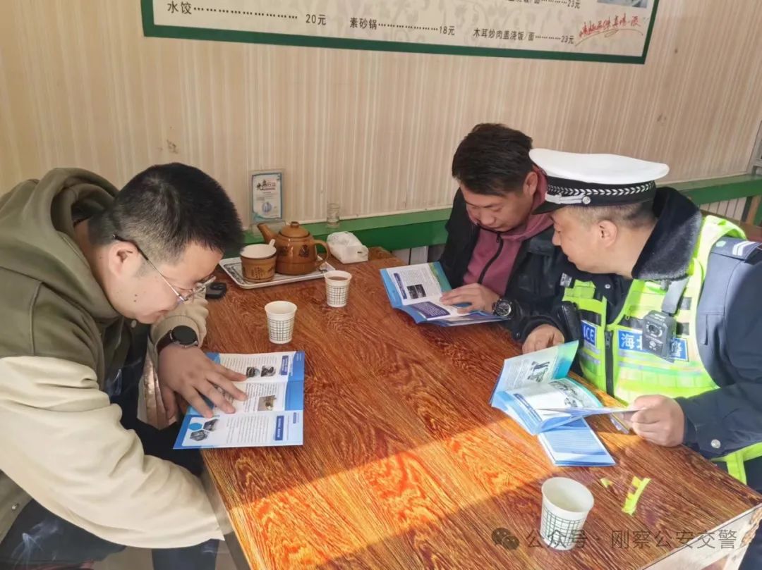 为进一步预防和减少因酒驾、醉驾等违法行为引发的涉酒交通事故,3月6日,刚察县公安局交警大队宣传民辅警结合辖区酒驾、醉驾实际情况特点,深入辖区餐饮场所开展精准“酒后禁驾”宣传活动,努力提升辖区酒后禁驾交通安全警示教育实效,切实从“事前”消除安全隐患。