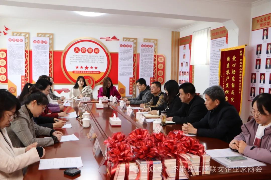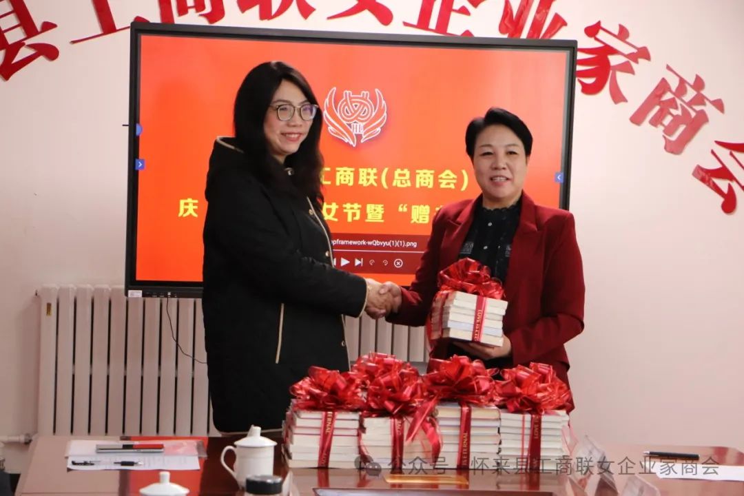 在第“114”个国际“三八”妇女节来临之际,3月5日上午,怀来县工商联(总商会)在县女企业家商会举办庆“三八”暨“赠书”活动。县委统战部副部长、工商联党组书记、常务副主席赵慧峰、工商联副主席唐永亮、部分工商联(总商会)副会长,工商联女企业家商会会长王冬花及部分会员参加活动。