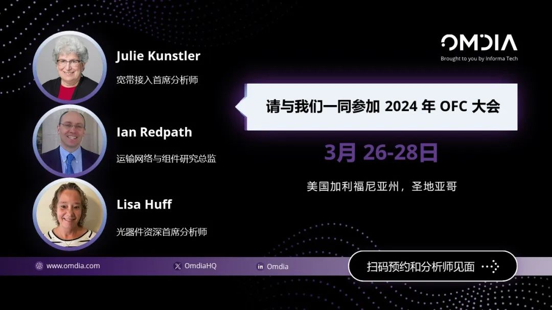 Omdia 将参加 2024 年 OFC 大会的众多会议,宽带接入首席分析师Julie Kunstler 将参与主持27日下一代PON 技术的讨论。