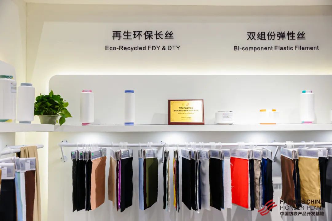 作为全球聚酯长丝行业地龙头企业,桐昆集团首次在展会现场推出异形双组分涤/锦复合纤维、全消光细旦多孔扁平仿绒聚酯纤维、聚呋喃二甲酸乙二醇酯纤维等最新技术成果。据桐昆集团股份有限公司质量管理部经理李国元介绍,作为中国纤维流行趋势2024/2025入选产品,异形双组分涤/锦复合纤维兼具涤纶弹性好、保形性好、挺括,锦纶耐磨、易染、吸湿等优点,是一种性能优、多领域应用的化纤产品;全消光细旦多孔扁平仿绒聚酯纤维截面呈椭圆状,具有较好的消光效果,外观和手感类似天然棉纤维,成品面料具有手感细腻、绒感丰满、悬垂性好等优点,且有一定的耐光、抗紫外和防霉功能。