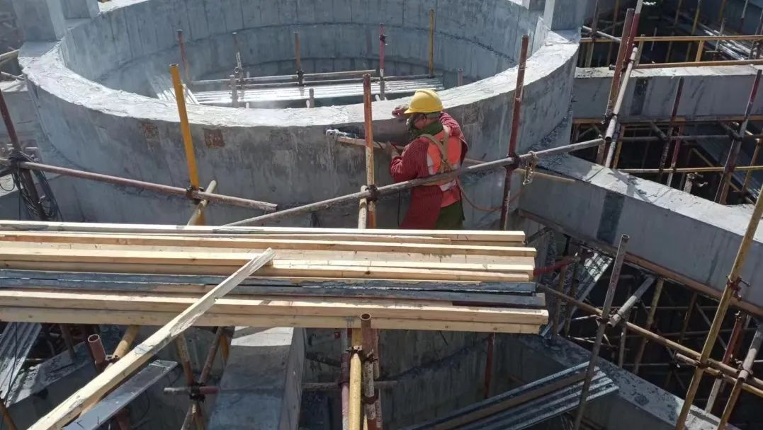 Ⅲ标泥沙处理站工程加药间屋顶钢结构吊车轨道安装,一层构造柱钢筋绑扎;1#、2#澄清池内脚手架拆除,预埋件表面浮浆剔除;3#、4#澄清池8米走道板钢筋绑扎;7#、8#澄清池-6.6米~2米施工脚手架搭设、完善,下锥模板支设。累计形象进度:加药间主体工程已完成;1#、2#澄清池主体结构已完成;3#、4#澄清池已浇筑到+5.6m,剩余2.4m;5#、6#、7#、8#澄清池下椎体承台混凝土浇筑到-6.0m。
