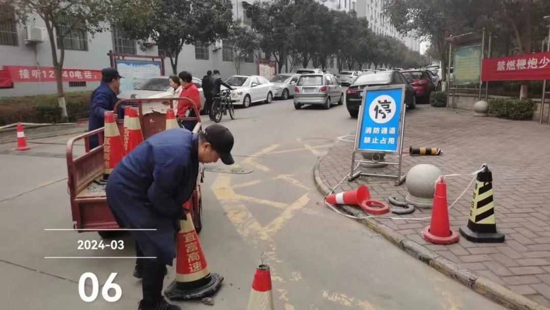 5.韩水润家物业公司为各小区电动车充电棚安装充电提示牌;对惠丰园小区大门口禁停区重新布置水泥锥形桶。