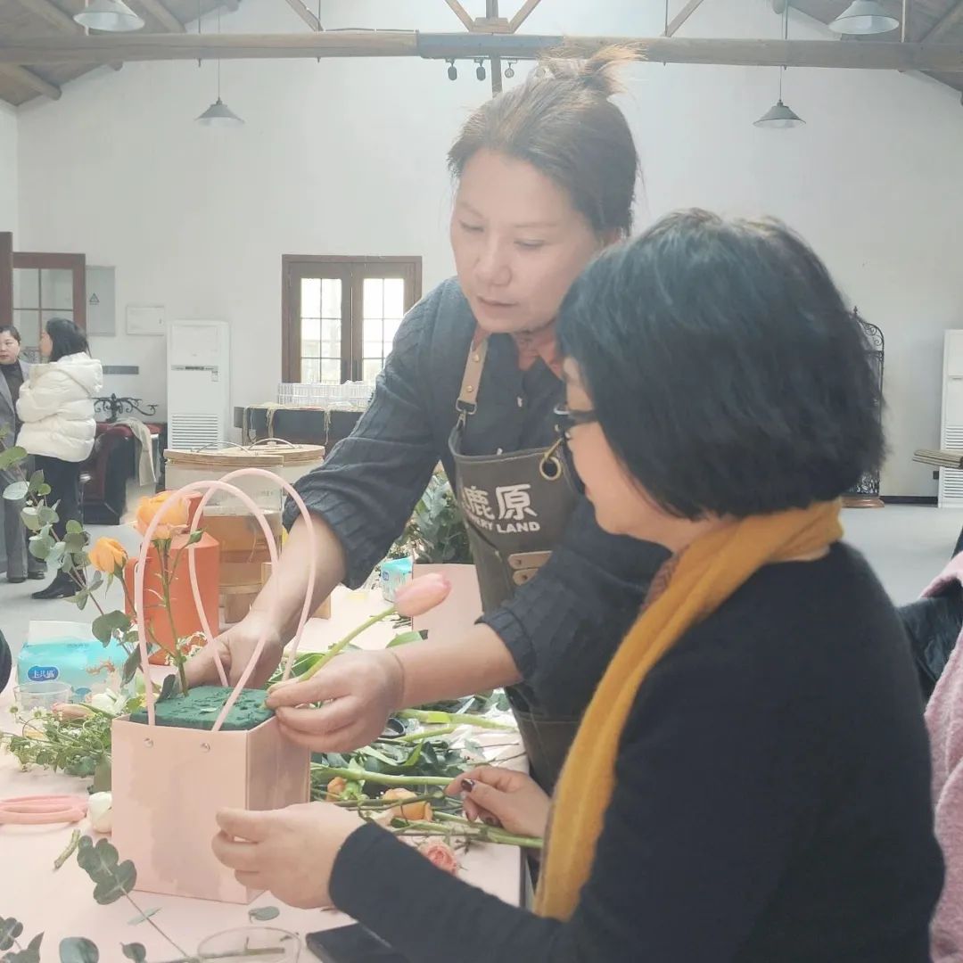 插花现场由专业花艺老师现场指导、讲解插花艺术基础知识、基本技巧、花卉主题的选择、颜色搭配、花枝长短的修剪等,并指导大家有序完成插花作品创作。