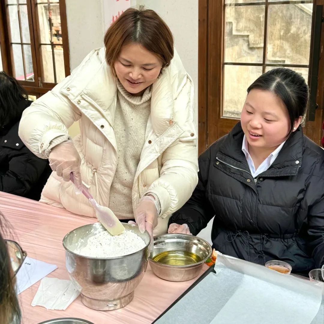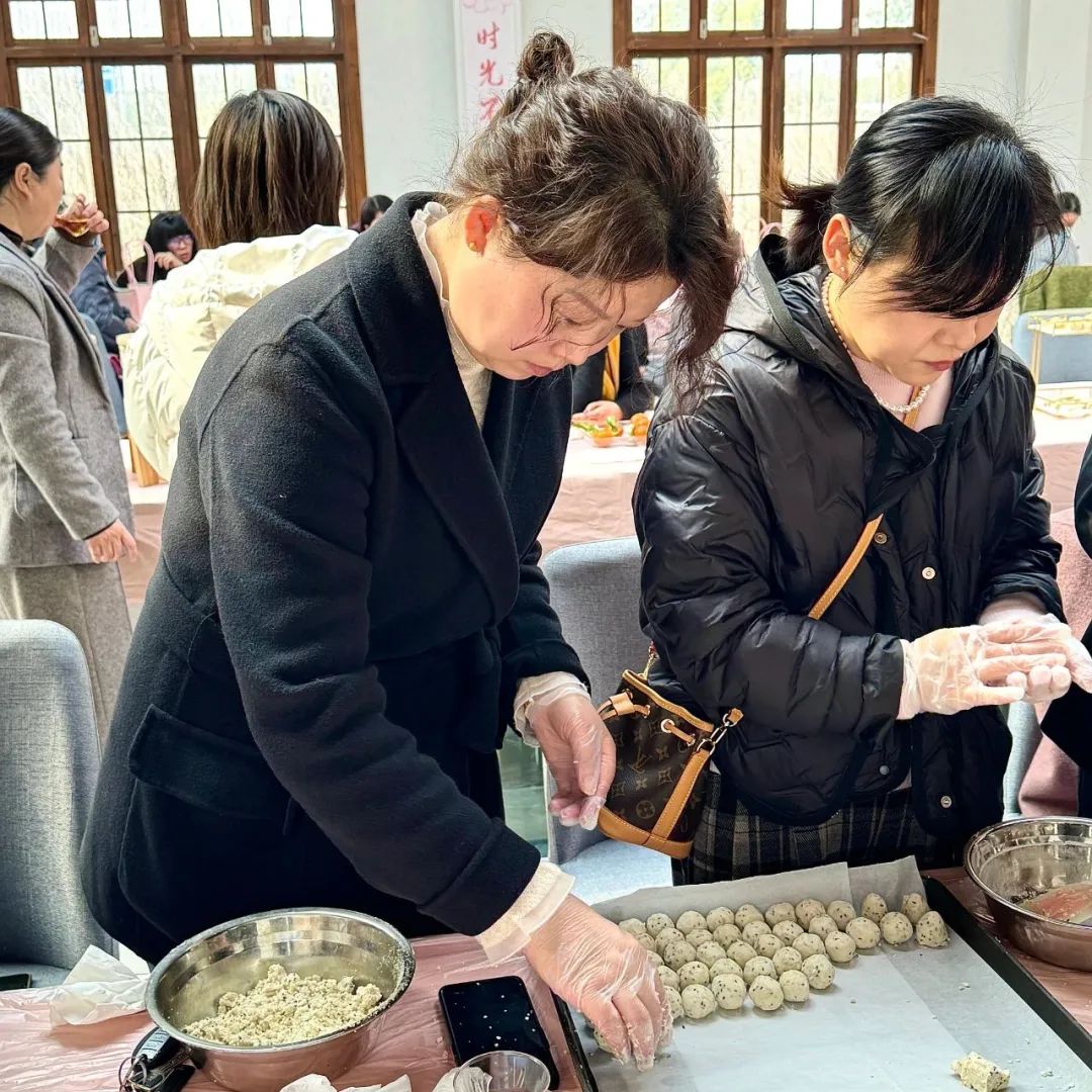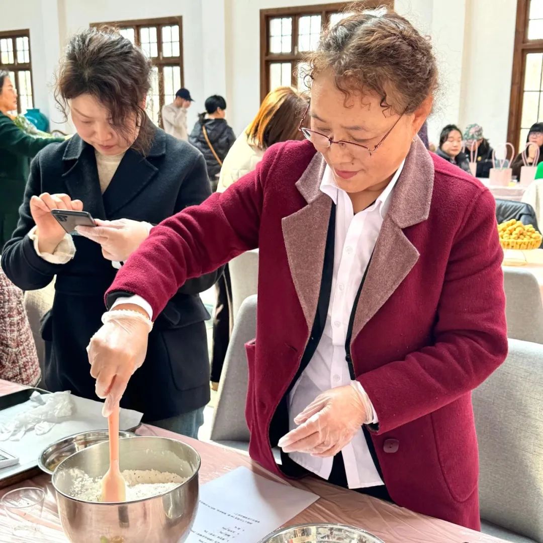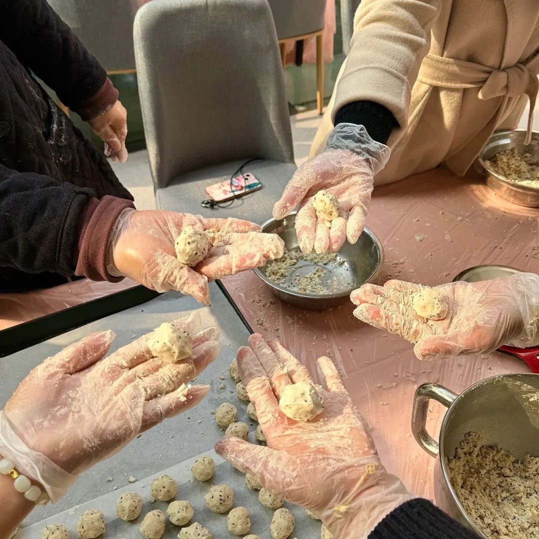 乐趣满满的烘焙制作也如火如荼的开展中。大家在老师的带领下,混合材料,揉捏成团。活动现场弥漫着香甜的味道,女同胞们欢声笑语、其乐融融,活动在甜蜜与欢乐的氛围中画上了圆满的句号。妇女同志们用一双巧手,做出了一桌精致的坚果酥,封装成盒送给自己。简单的过程寄托温柔的情韵,在共同相聚的日子里,物业行业的女同胞们卸去平日的忙碌与种种身份,共同感受这一刻的休闲与温馨。