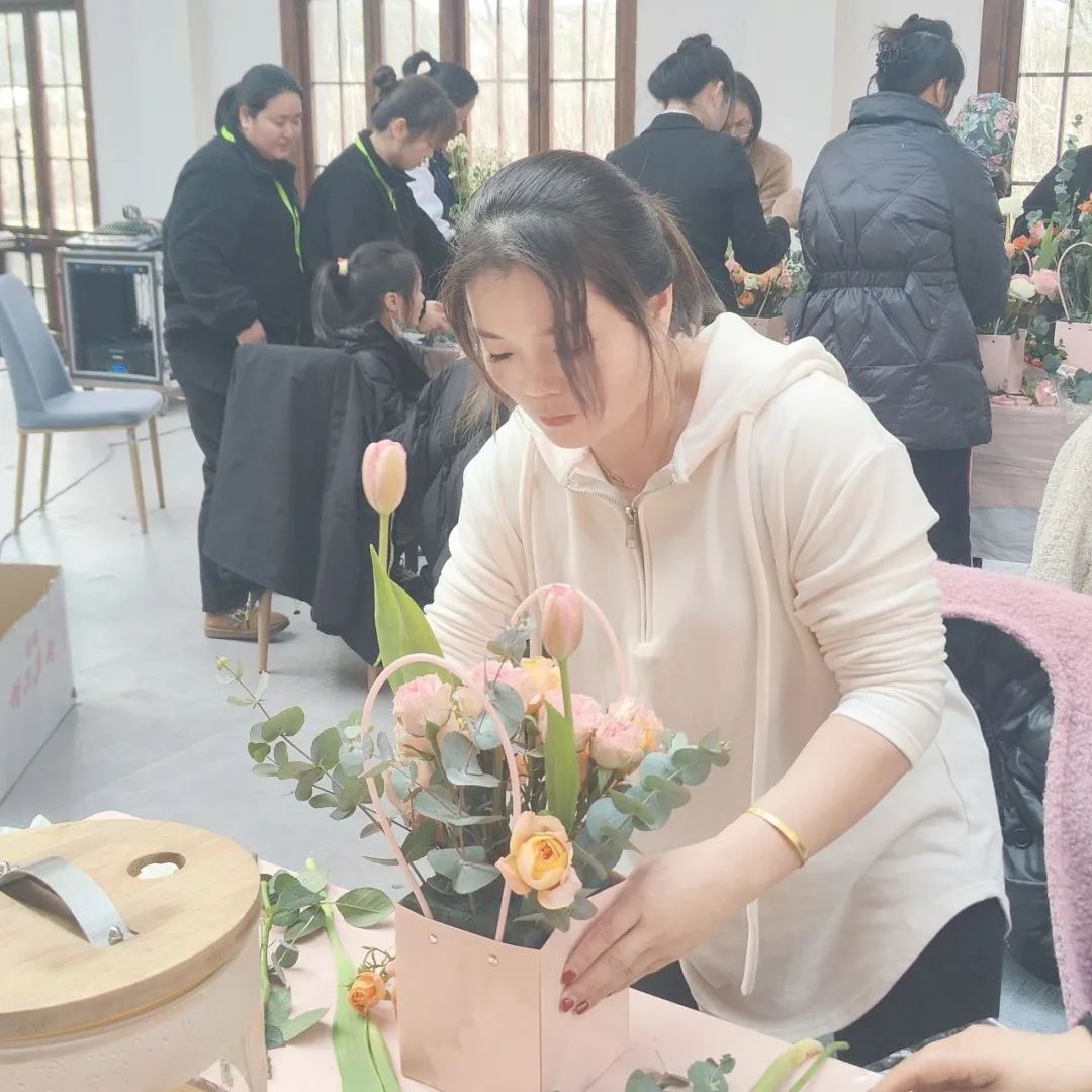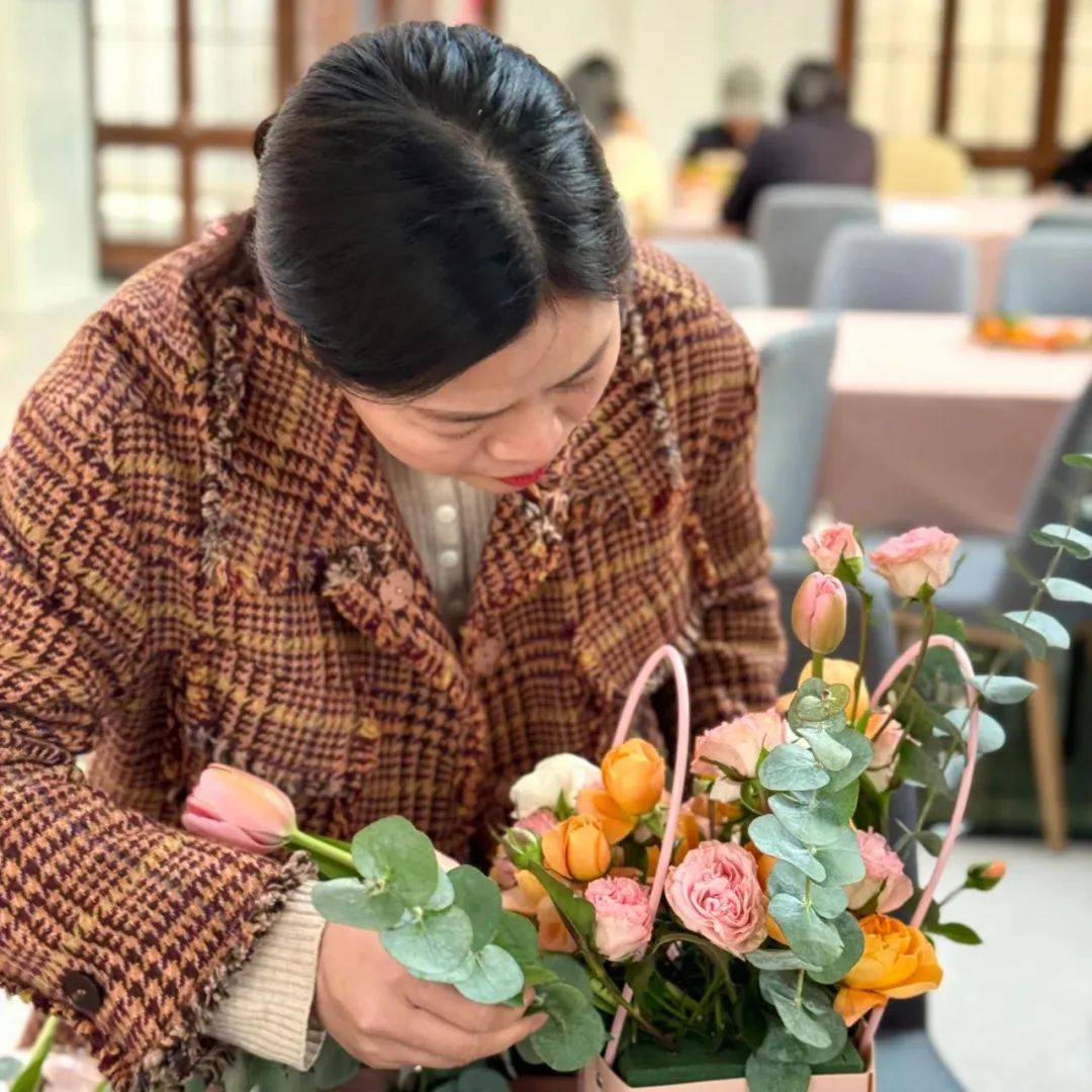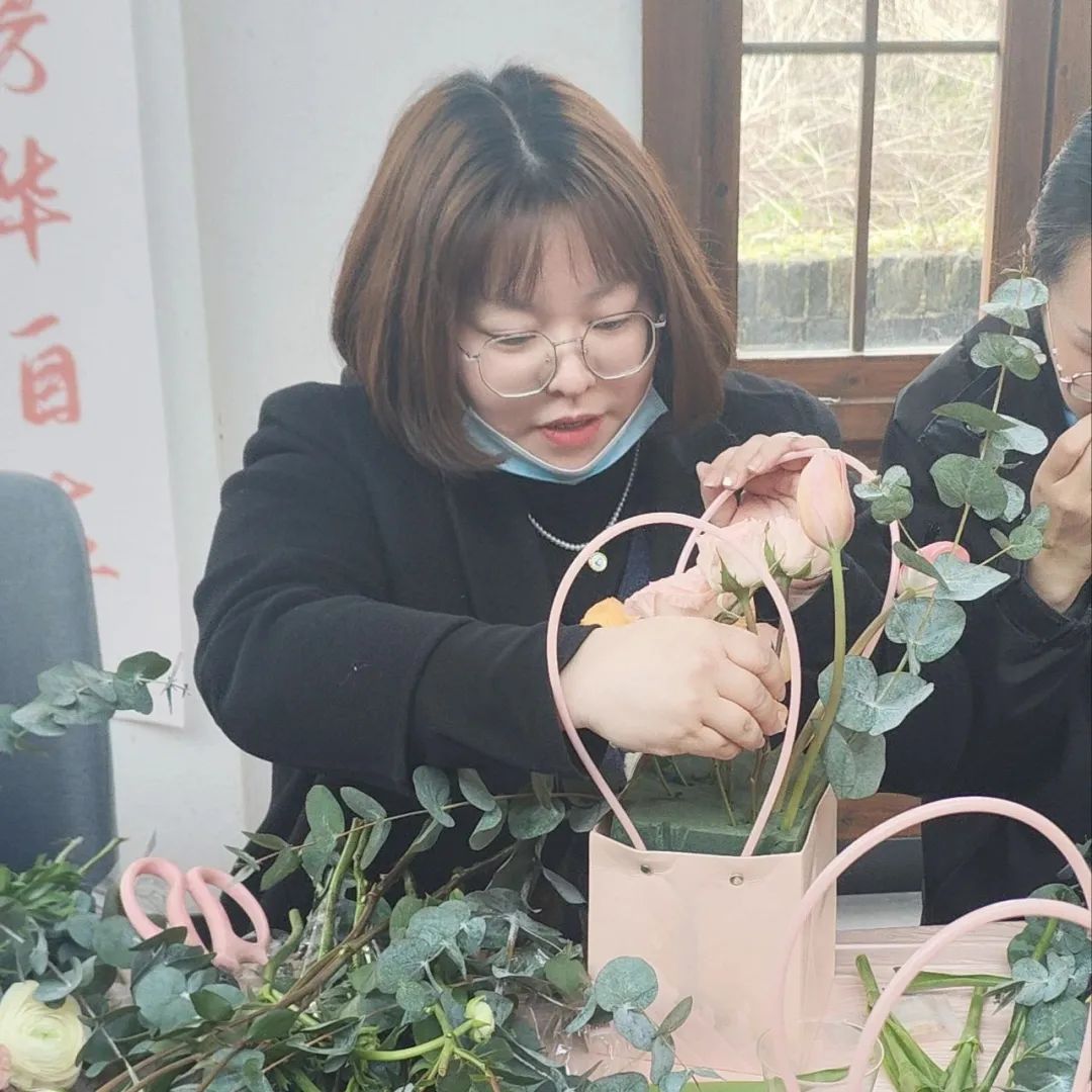 朵朵鲜花,根根枝叶,在她们巧手构造下,逐渐变化出各种艺术造型,或简约浪漫,或端庄高雅,为活动增添了几分温馨高雅的气息。