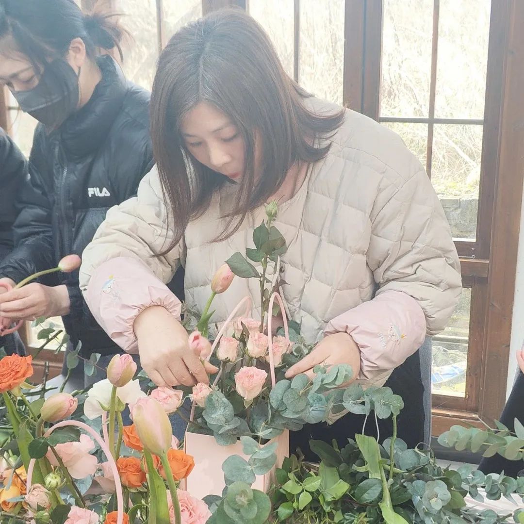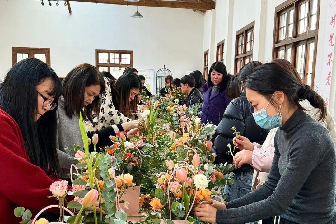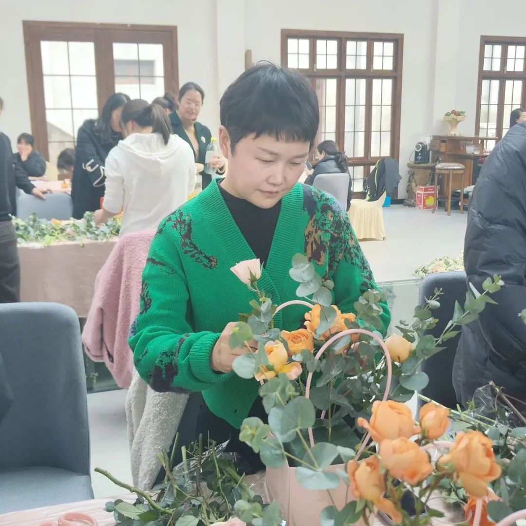 朵朵鲜花,根根枝叶,在她们巧手构造下,逐渐变化出各种艺术造型,或简约浪漫,或端庄高雅,为活动增添了几分温馨高雅的气息。