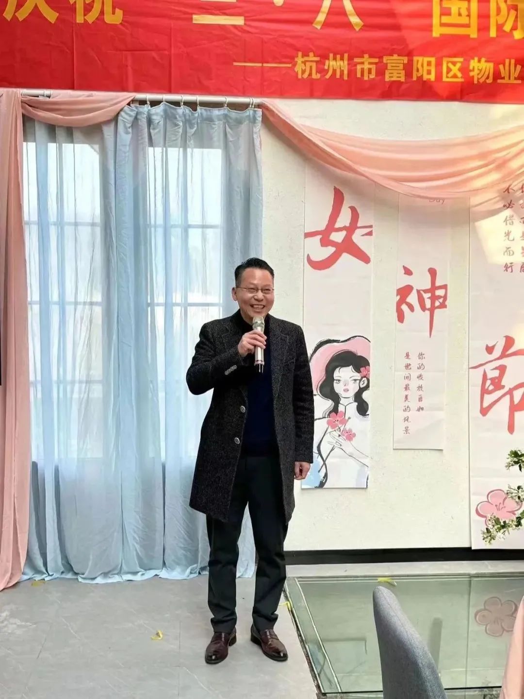 活动由杭州市富阳区物业管理行业协会妇女联合会主席汤波女主持,汤主席表示值此三八妇女节来临之际,向行业全体女性送上祝福,祝大家身体健康,工作顺利,阖家幸福,永葆青春!