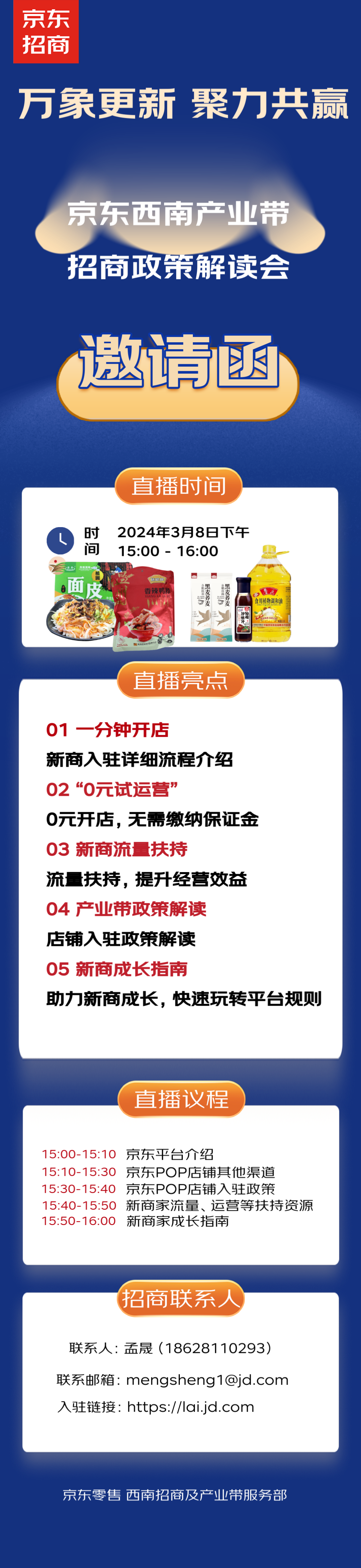 【直播预告】京东西南产业带3.8线上招商政策解读会