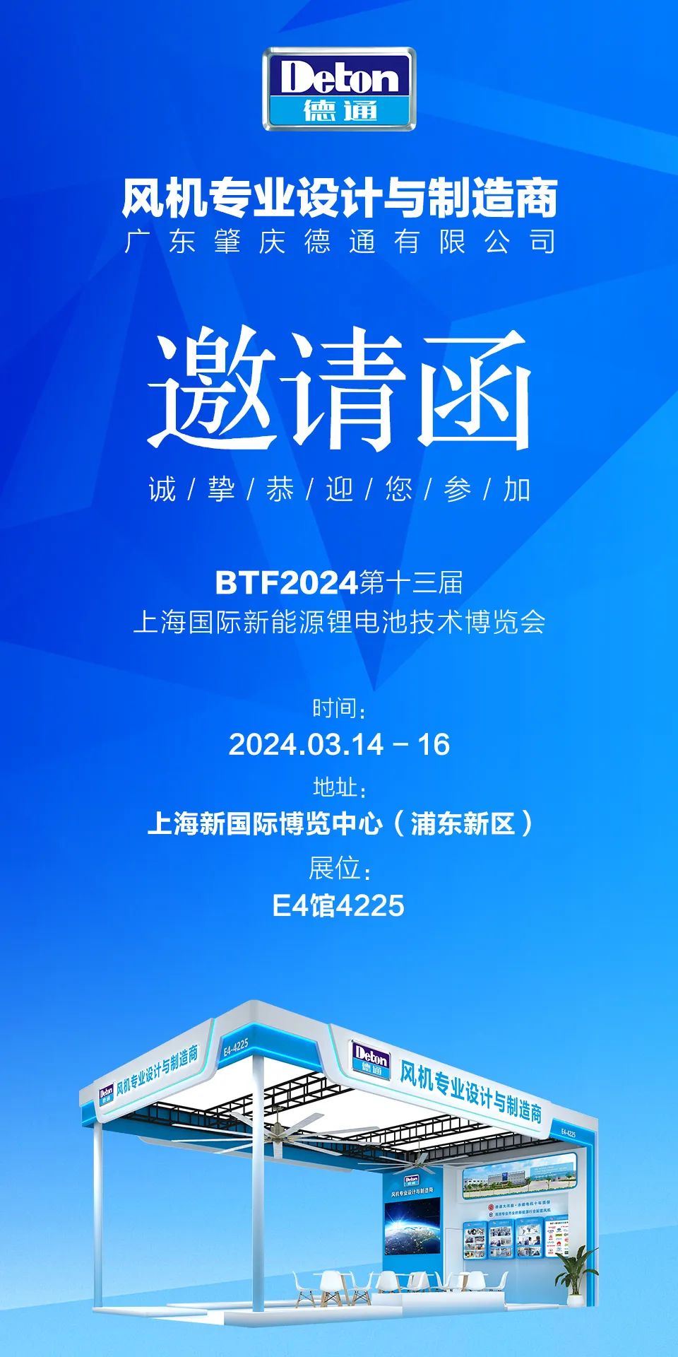 德通将在展会上亮相高效·专业·齐全的新能源行业配套风机、高大厂房空间通风降温、岗位通风: