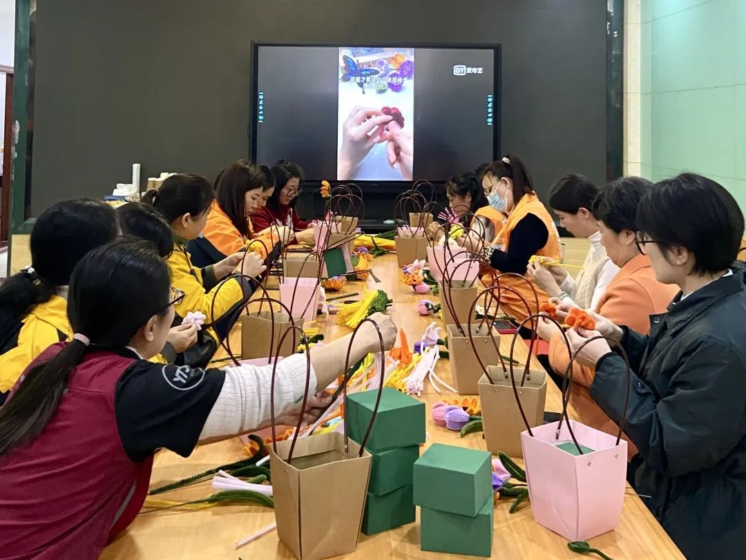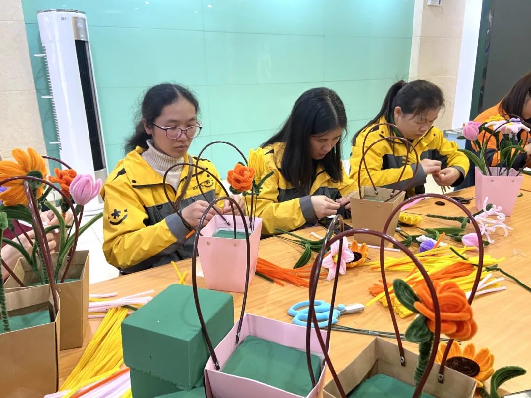此次主题活动主要包括手工绒花制作评比和妇女权益保护等法律知识宣贯两项内容,邮政、顺丰、韵达、圆通、加运美等多家企业的25名女职工代表参加了活动。活动现场,培训老师向参加人员介绍了“绒花”历史,对制作流程和工艺要求等进行了细致讲解,并向大家发放了包含毛线棒、花篮、花泥等工具的制作素材包,带领各女职工编织手工绒花及组合插花,并对大家的制作成果进行评比表彰,充分调动女职工参与活动的积极性和主动性。同时,活动组织对新修订的《中华人民共和国妇女权益保障法》等法律法规和反家庭暴力、合同纠纷、反诈等相关法律知识进行解读,针对当前结婚生育、人身权利等领域侵害妇女合法权益的问题,深刻讲述妇女维权知识,并与女职工代表进行现场互动,解答大家提出的家庭纠纷、合同纠纷、权益保障等方面问题。活动现场还为女职工代表们送上了关爱慰问礼包和茶点饮品,进一步增强妇女同胞的凝聚力、自信心和幸福感。