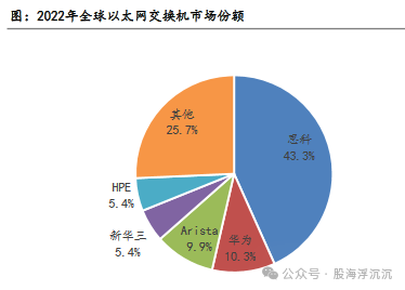 全球交换机市场思科一家独大,占据了近一半的市场份额,其他主要参与企业有华为、Arista、HPE和新华三等,根据IDC的统计数据 ,2022年,上述5家企业合计市场份额为74.3%。