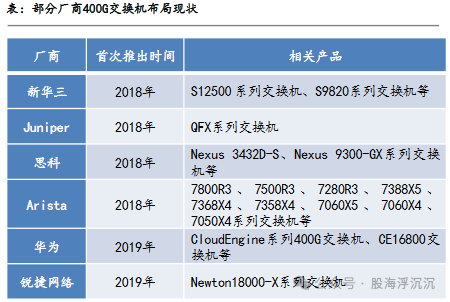 数据中心速率提升拉动交换机产品升级。数据中心的网络流量具有高密度应用调度、浪涌式突发缓冲的特点,普通交换机难以满足其需求,拉动交换机产品加速升级。为满足数据中心不断增长的带宽需求,各交换机厂商加快部署400G交换机产品。