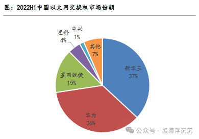 国内交换机市场的主要参与企业为华为、新华三、星网锐捷、思科、迈普技和中兴,2022年H1,上述5家企业合计市场份额达93.5%。