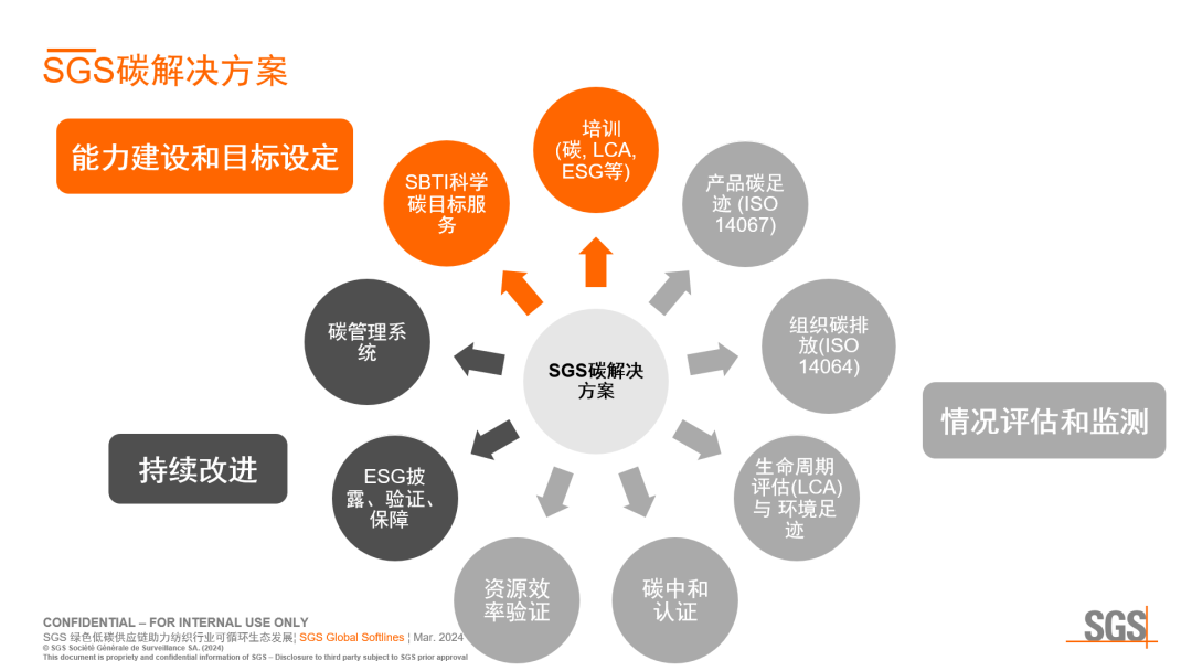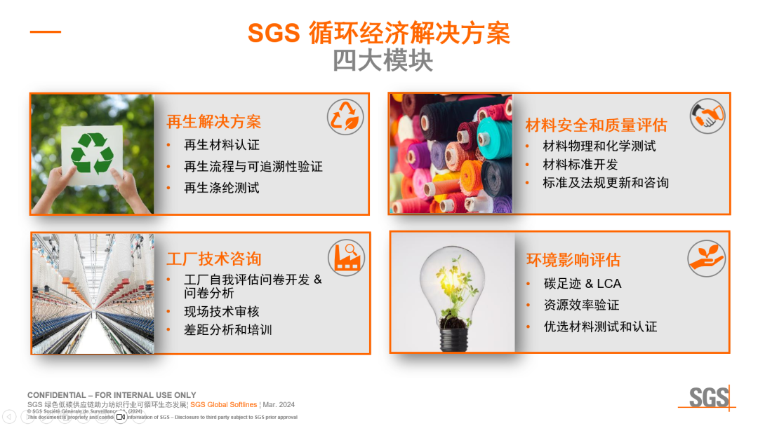 针对行业目前高度关注的绿色低碳转型问题,朱青博士分享了再生解决方案、材料安全和质量评估、工厂技术咨询、环境影响评估为代表的SGS循环经济解决方案以及SGS碳解决方案。