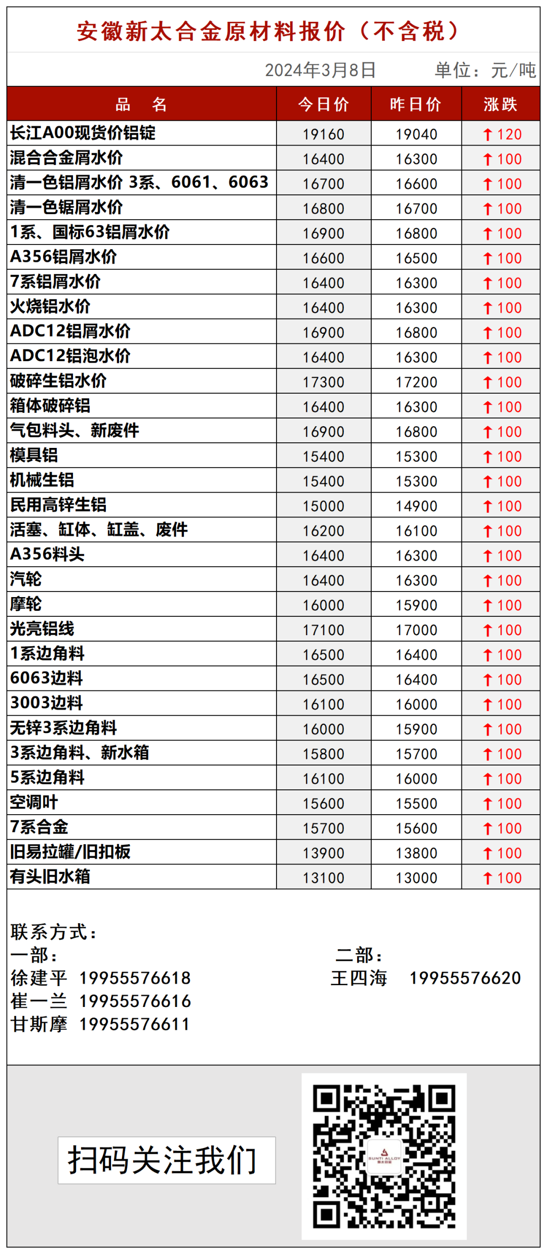 安徽新太合金有限公司3月8日最新报价