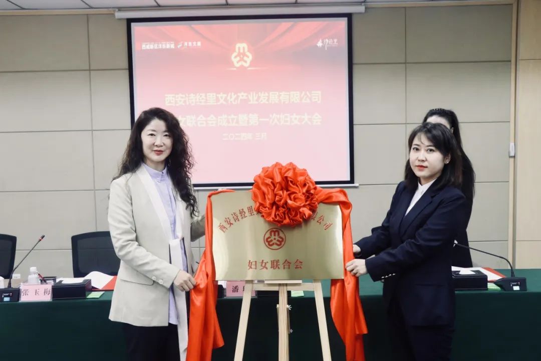 随后,沣东文旅集团妇女联合会主席潘琳为诗经里文化公司妇女联合会揭牌。