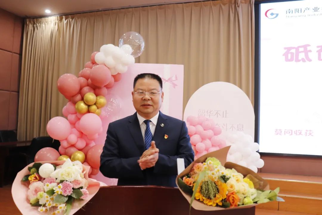 3月8日上午,南阳产业投资集团以“砥砺奋进新时代 我为产投添光彩”为主题,开展“三八”妇女节插花活动。集团党委副书记、工会主席李鲁杰主持活动并致辞,集团本部及各子公司全体女职工在专业花艺师的指导下进行剪花、插花活动,共同庆祝第114个“三八”国际劳动妇女节。