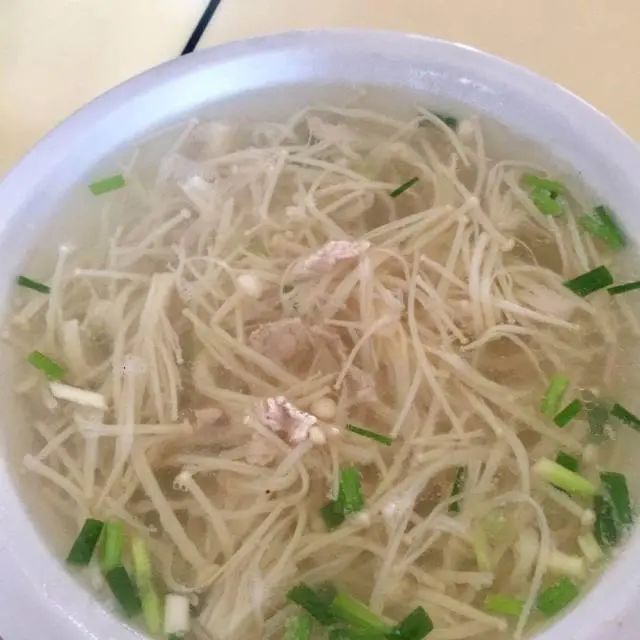 五彩河粉、包菜丝、蘑菇瘦肉汤
