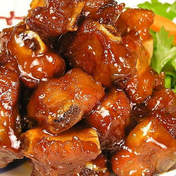 高粱米饭、糖醋排骨、凤尾菌炒肉