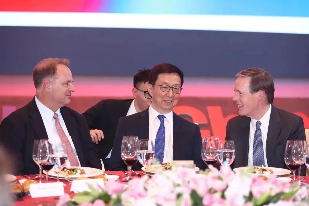 中国美国商会主席谭森首先发言并明确表示美国公司正在加大其对中国供应链的投资。他表示,在华美国企业的发展,一定会造福两国经济和人民。美国驻华大使尼古拉斯·伯恩斯在发言中列举了近期两国领导人之间的交流和互动,并不断强调中美关系的重要性。中华人民共和国副主席韩正最后发表主旨讲话。他表示,今年是中美建交45周年,习近平主席和拜登总统互致贺信。中美经贸合作潜力巨大、空间广阔、前景可期,欢迎更多美国企业界朋友来华投资兴业。期待中国美国商会坚守初心、砥砺前行,加强与中国贸促会等机构沟通联系,共同推动中美经贸合作取得更多成果。