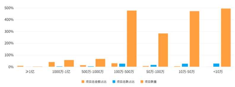 项目金额100万-500万的项目数量为:476个;